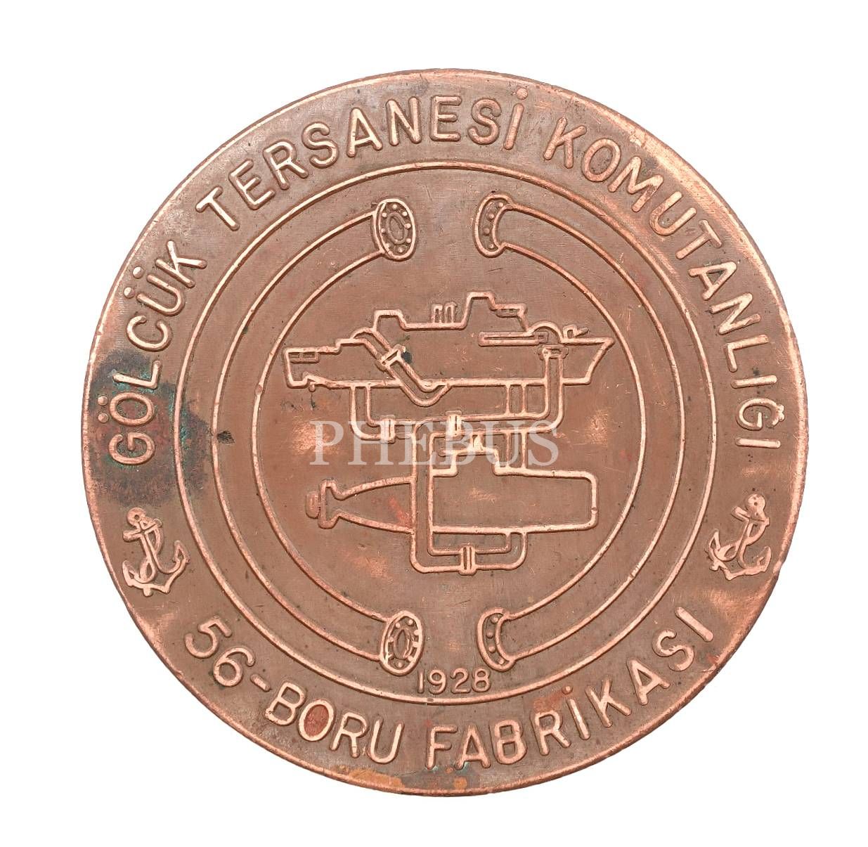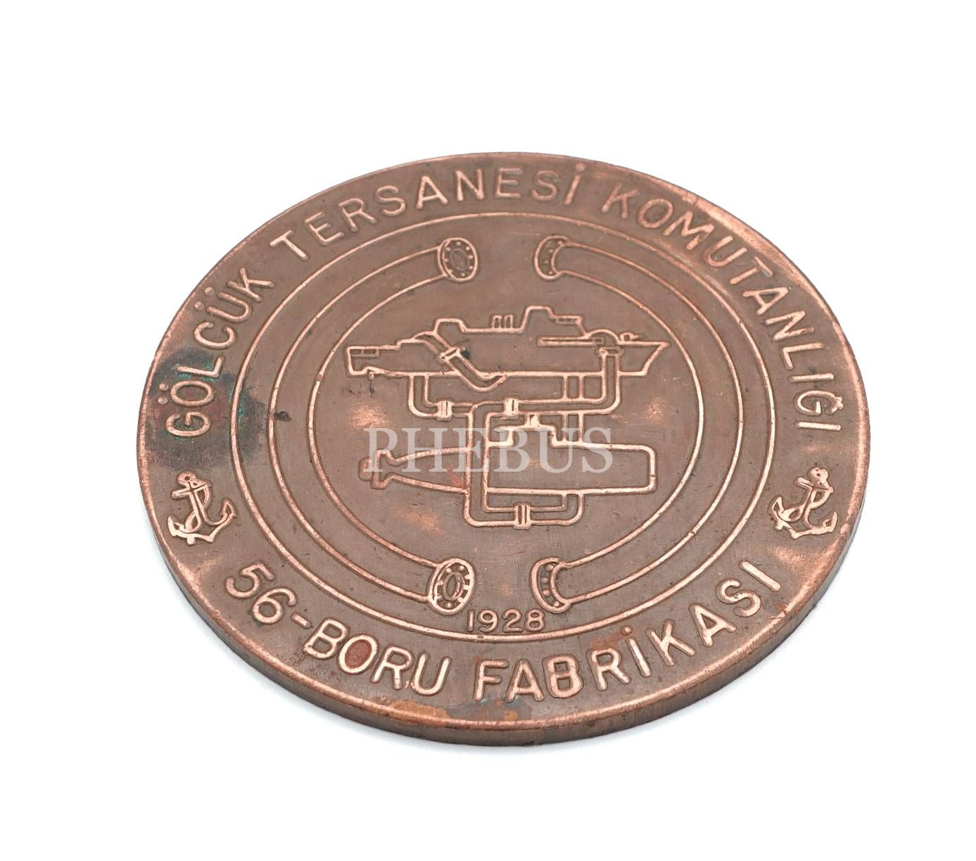 Gölcük Tersanesi Komutanlığı (56) Boru Fabrikası yazılı bakır madalyon, çap 8,5 cm...