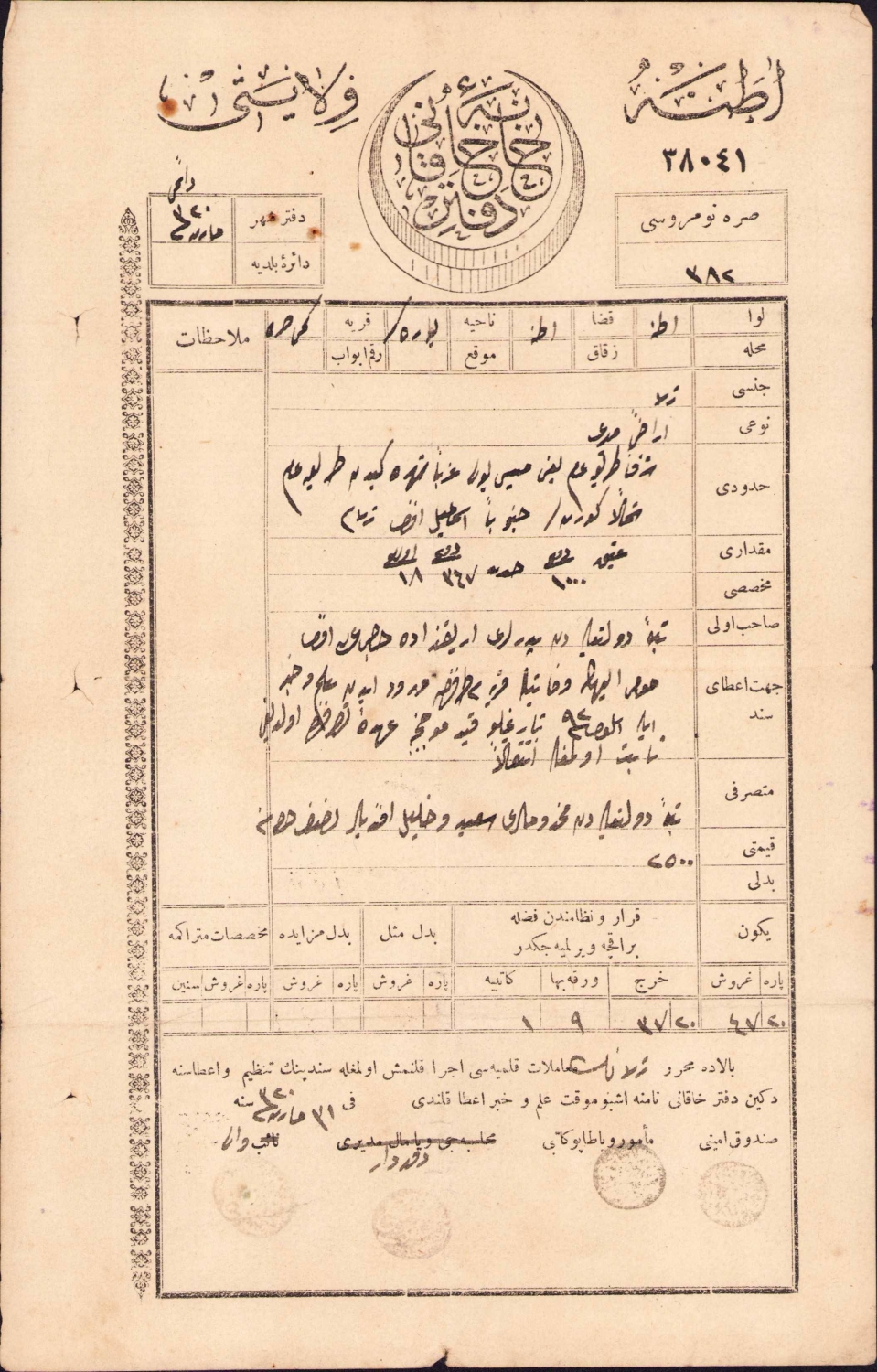 Osmanlıca tapu, Adana, 1320 tarihli, 18x28 cm