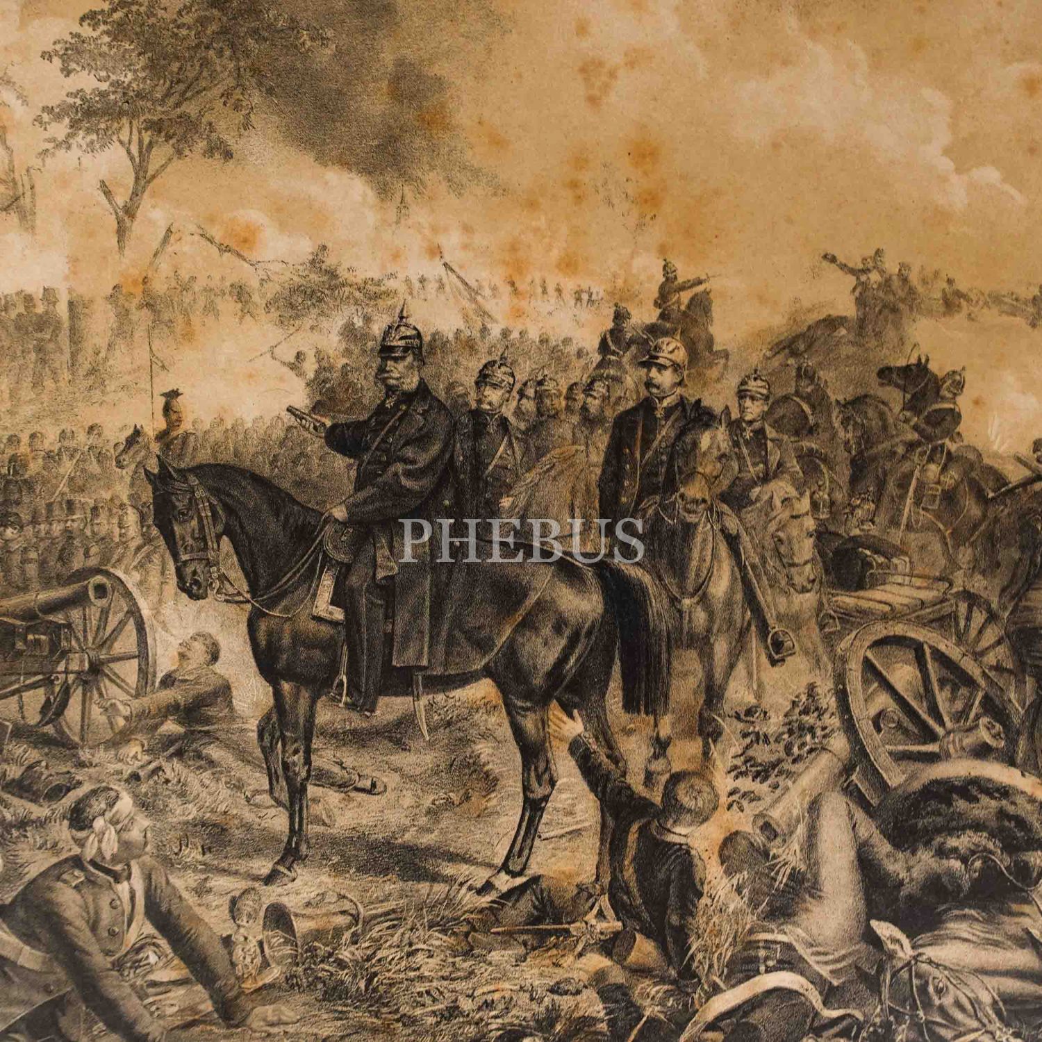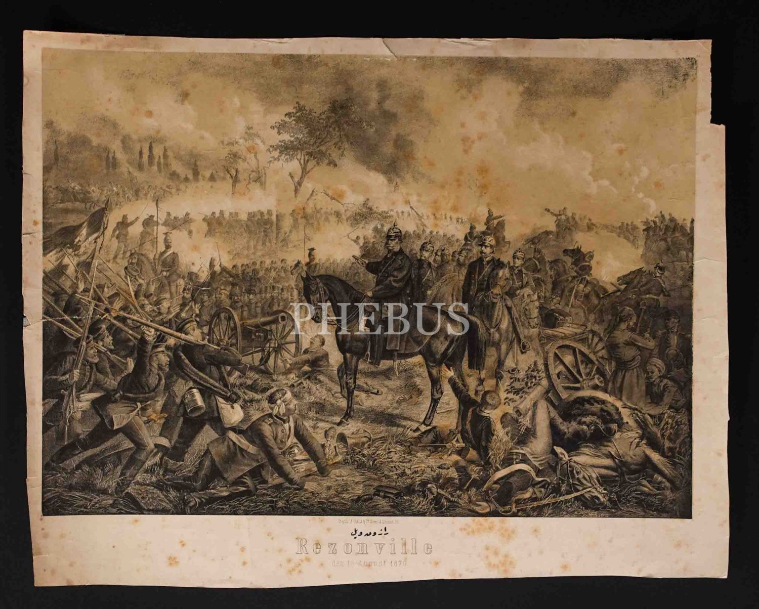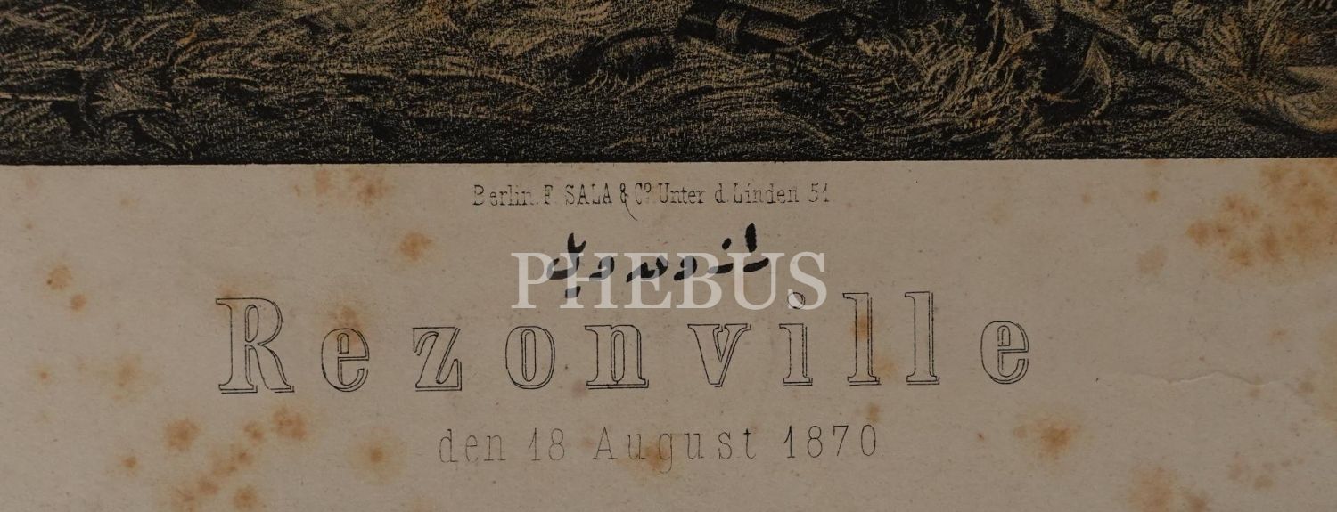 Prusya ordusunun Fransızlara karşı ezici galibiyetiyle neticelenen Rezonville Muharebesi´ni tasvir eden Alman baskı gravür, F. Sala & Co., Berlin, 59x46 cm...