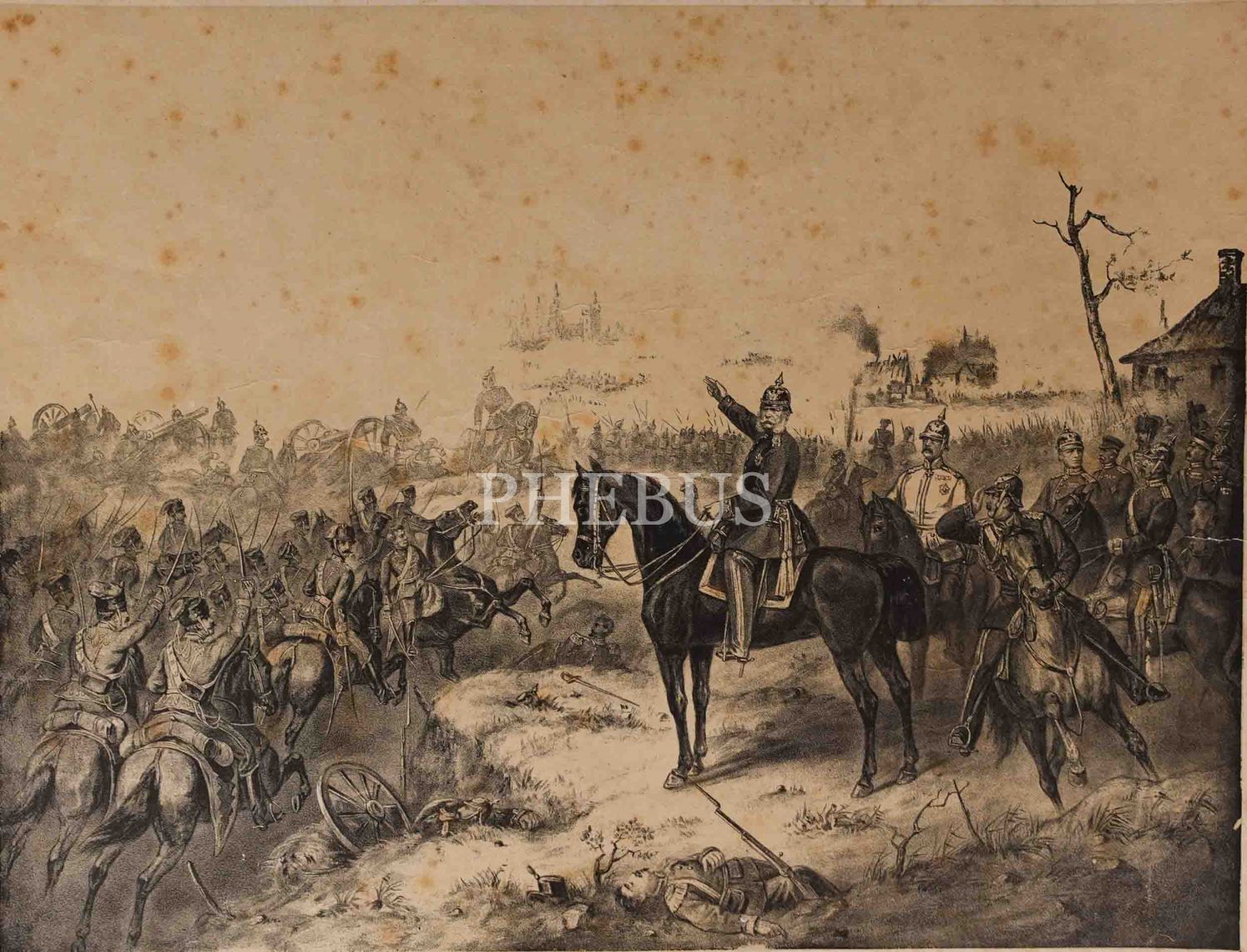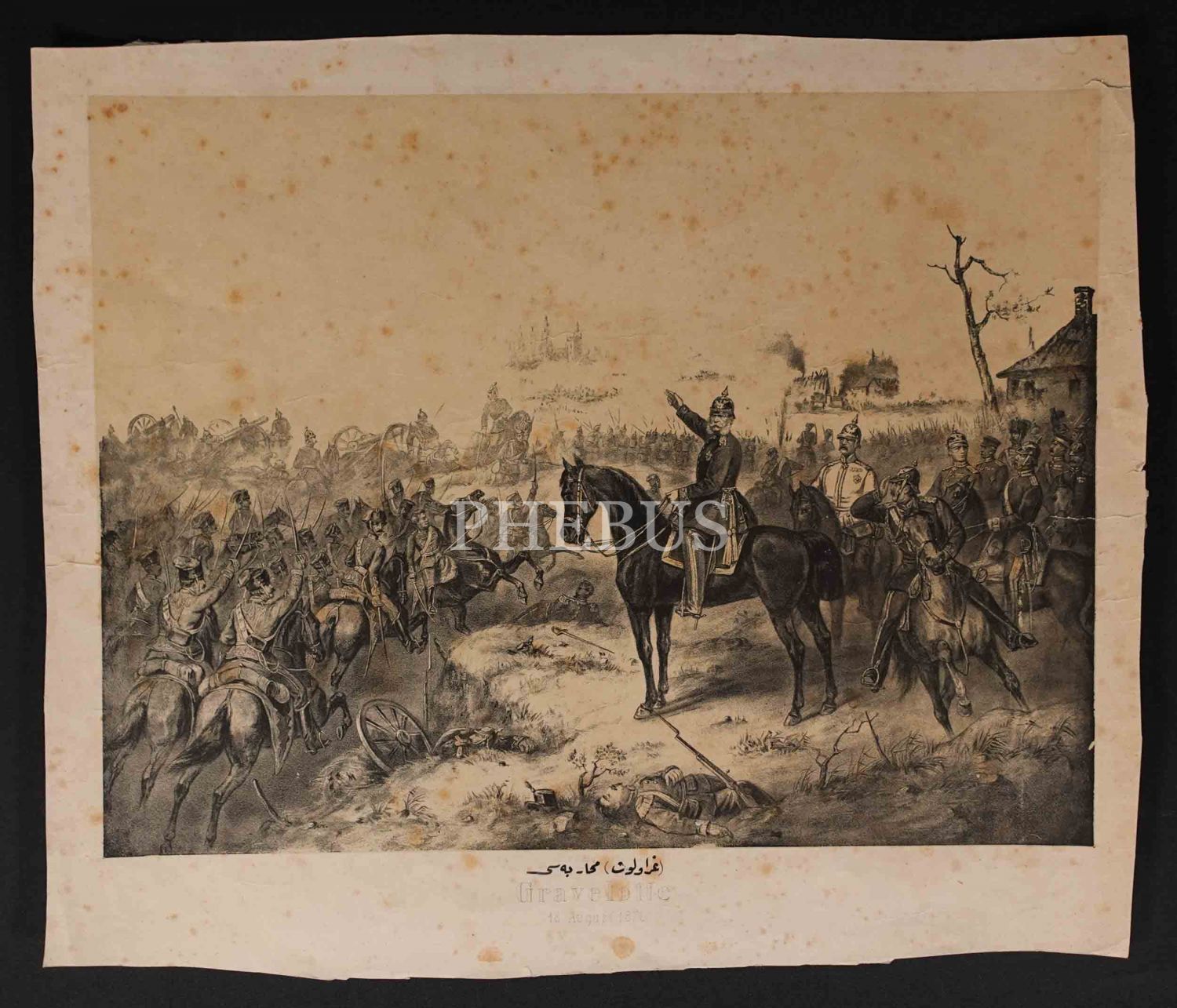 Fransa-Prusya Savaşı´nın en çetin mücadelesine sahne olan Gravelotte Muharebesi konulu Alman baskı gravür, F. Sala & Co., Berlin, 52x44 cm...