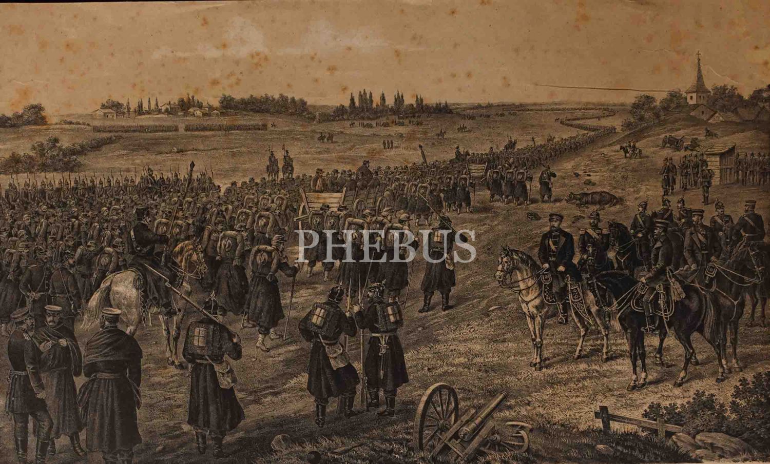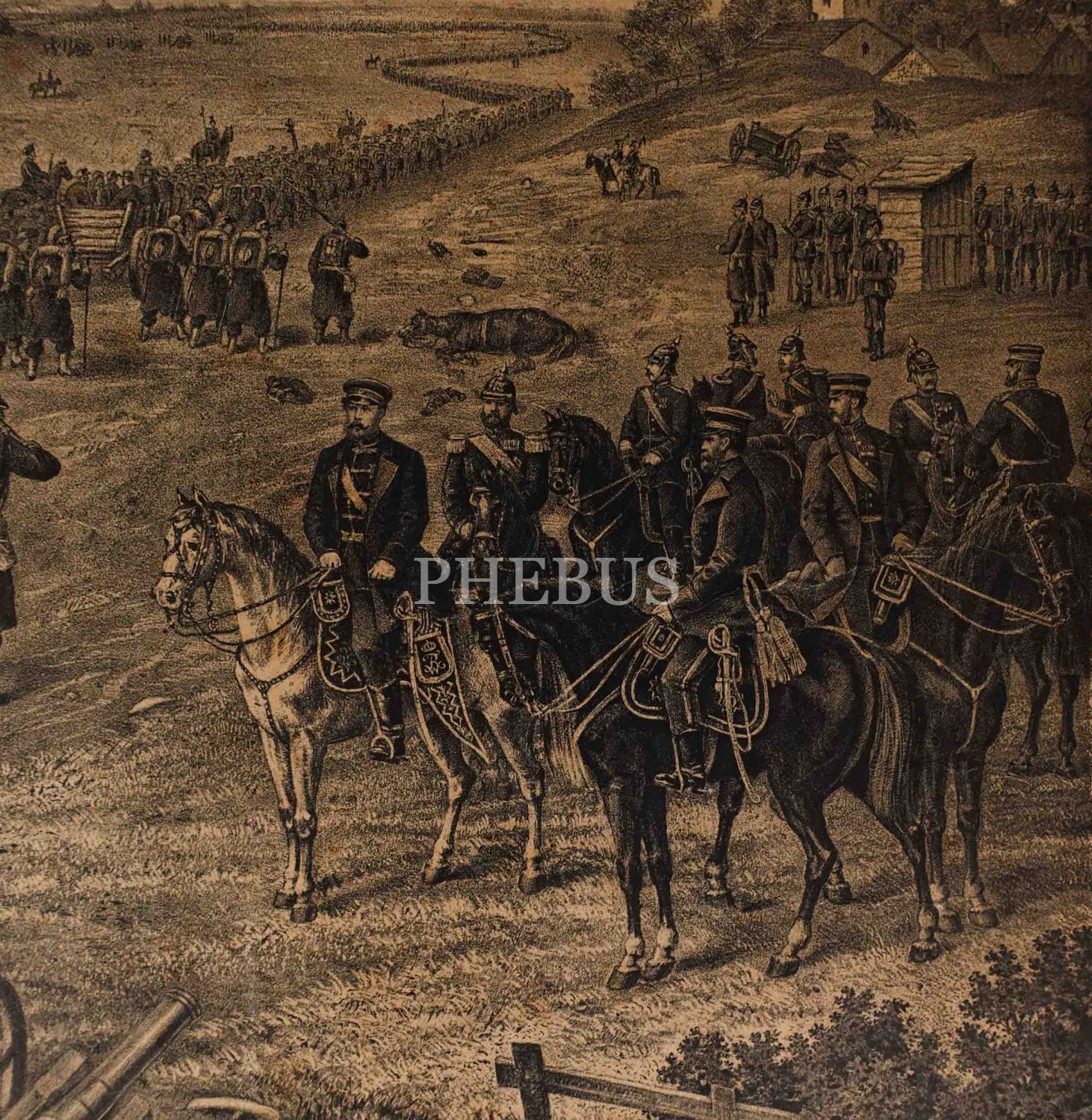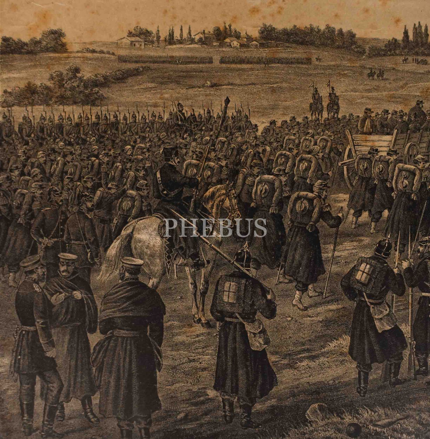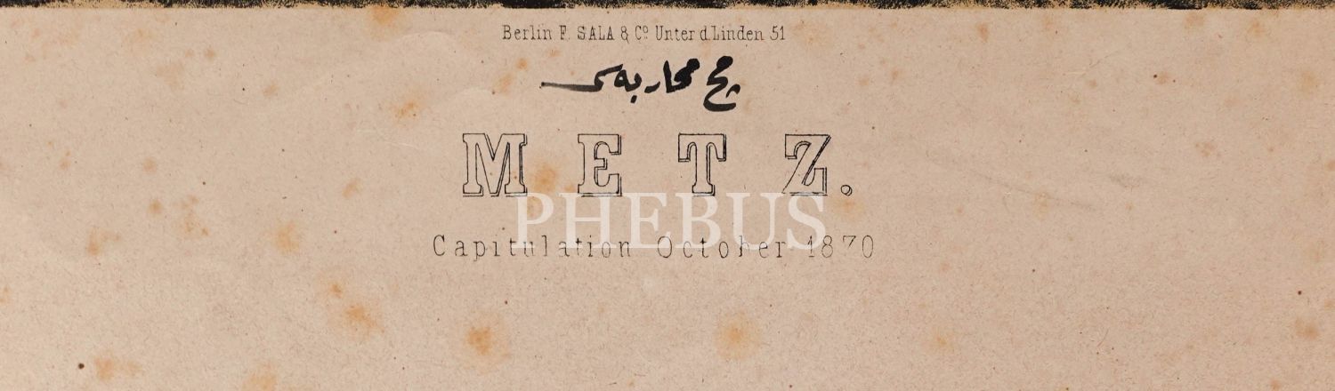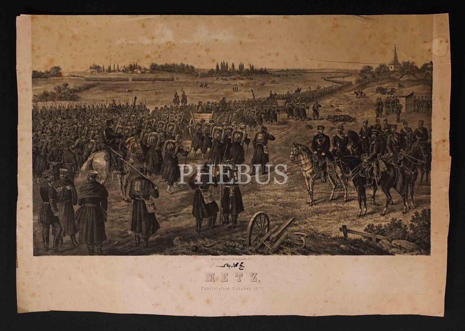 Metz Muharebesi sonrası Prusyalılara teslim olan Fransız askerleri konulu Alman baskı gravür, F. Sala & Co., Berlin, 59x41 cm...