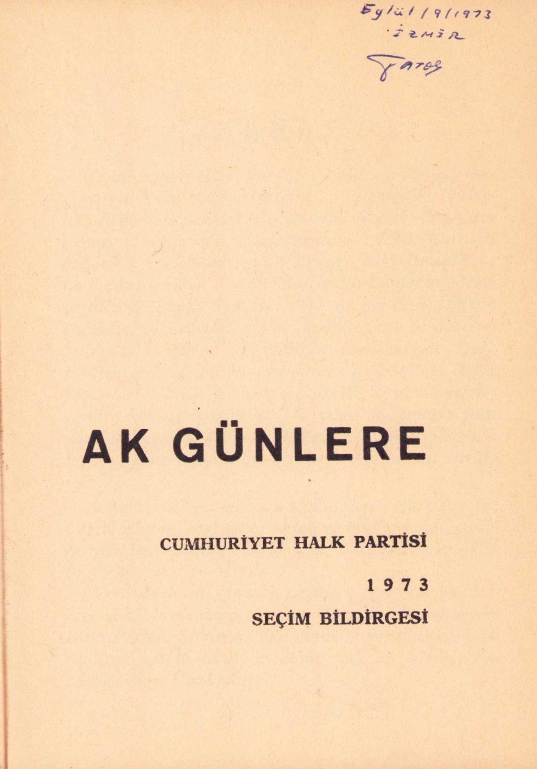 Ak Günlere , CHP 1973 seçim bildirgesi, Ankara, 234 sayfa, 11x16 cm