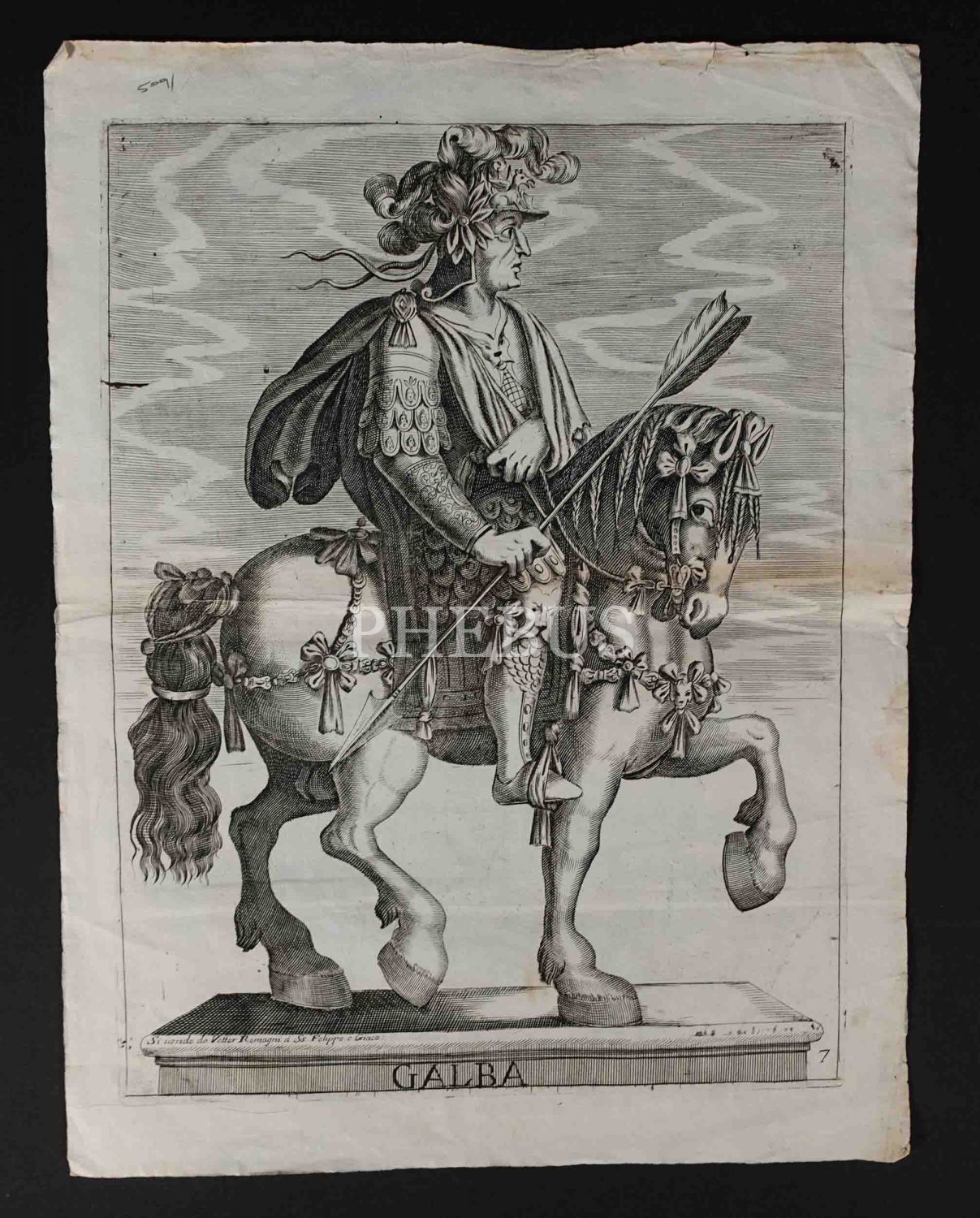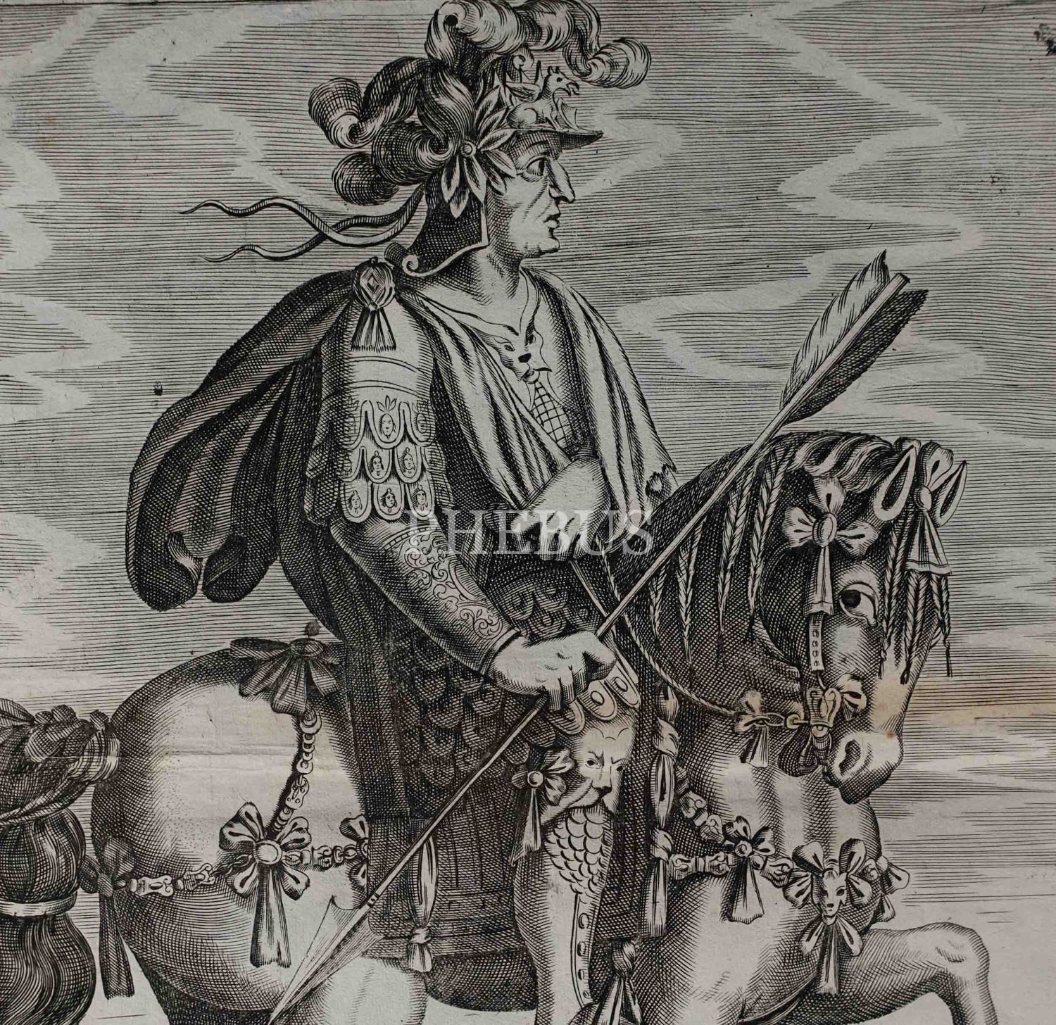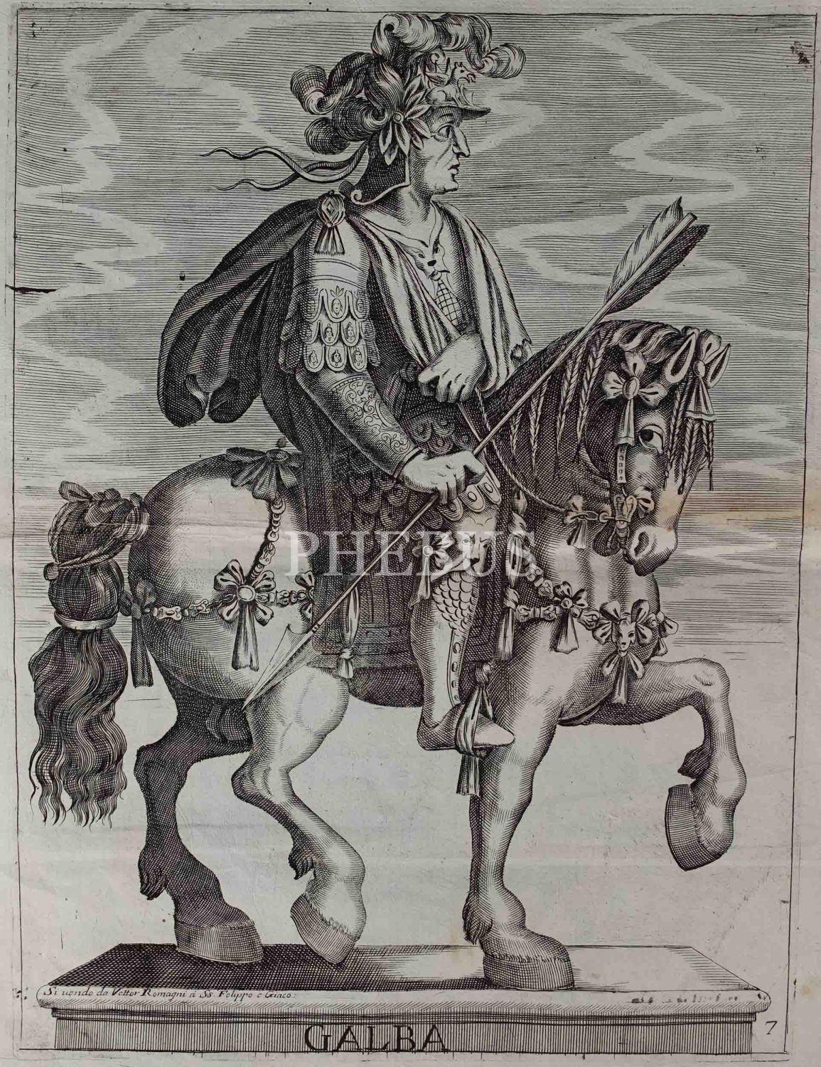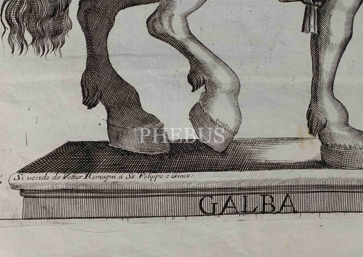 Roma İmparotorluğu - The Twelve Caesars serisinden 1754 tarihli gravür. "Si vende da Vettor Romagni a Ss. Felippo e Giaco. - P.T. Fecit" Bir kitabın içinden çıkma değil, müstakil olarak basılıp satılmış bakır baskı gravür.