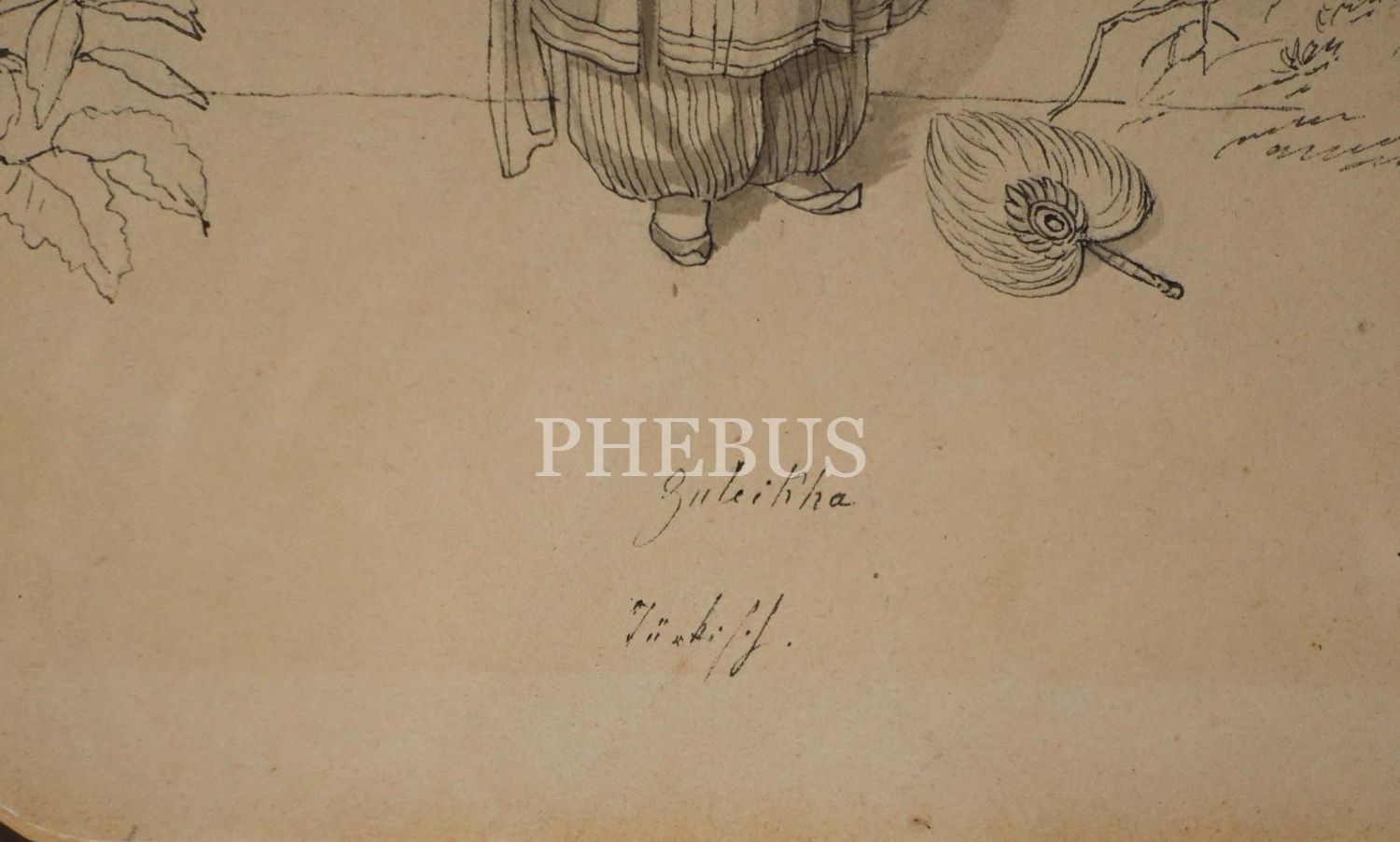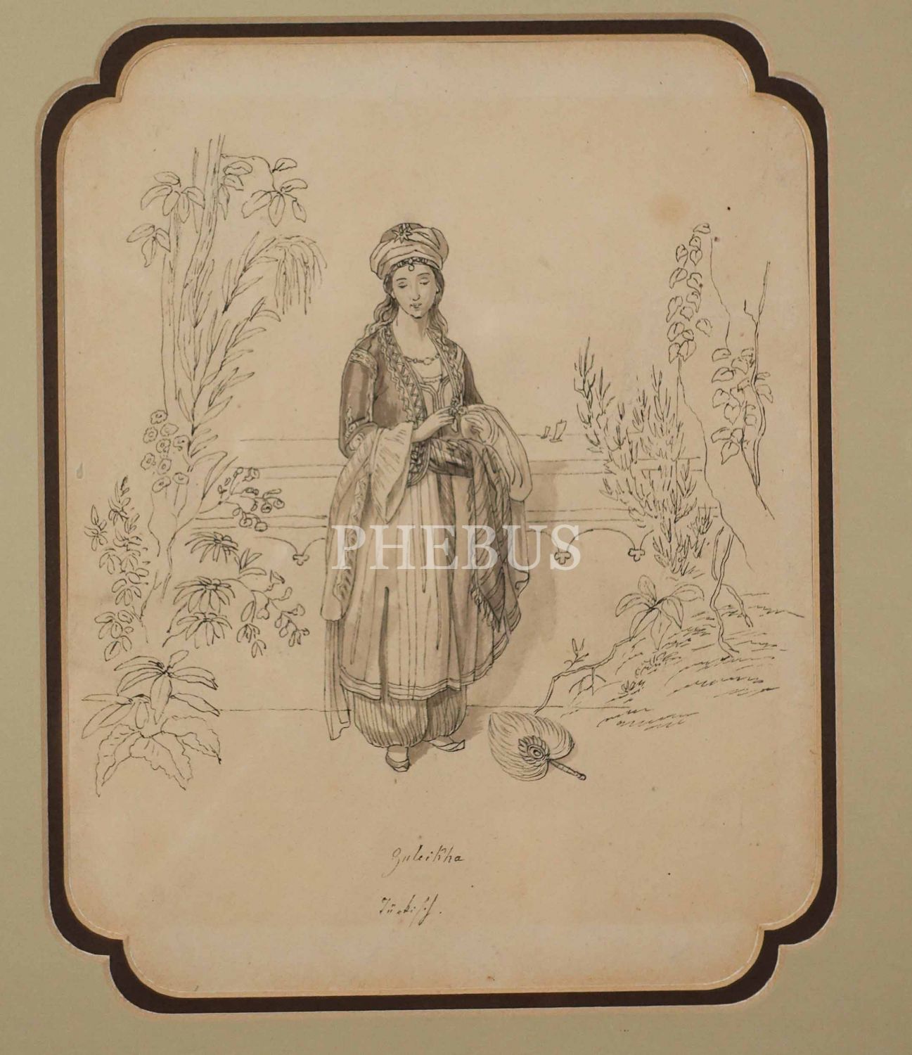 "Zuleikha" (Züleyha) başlıklı, çini mürekkebiyle orijinal çizim Türk kadını, çerçevesiyle birlikte 36x41 cm...