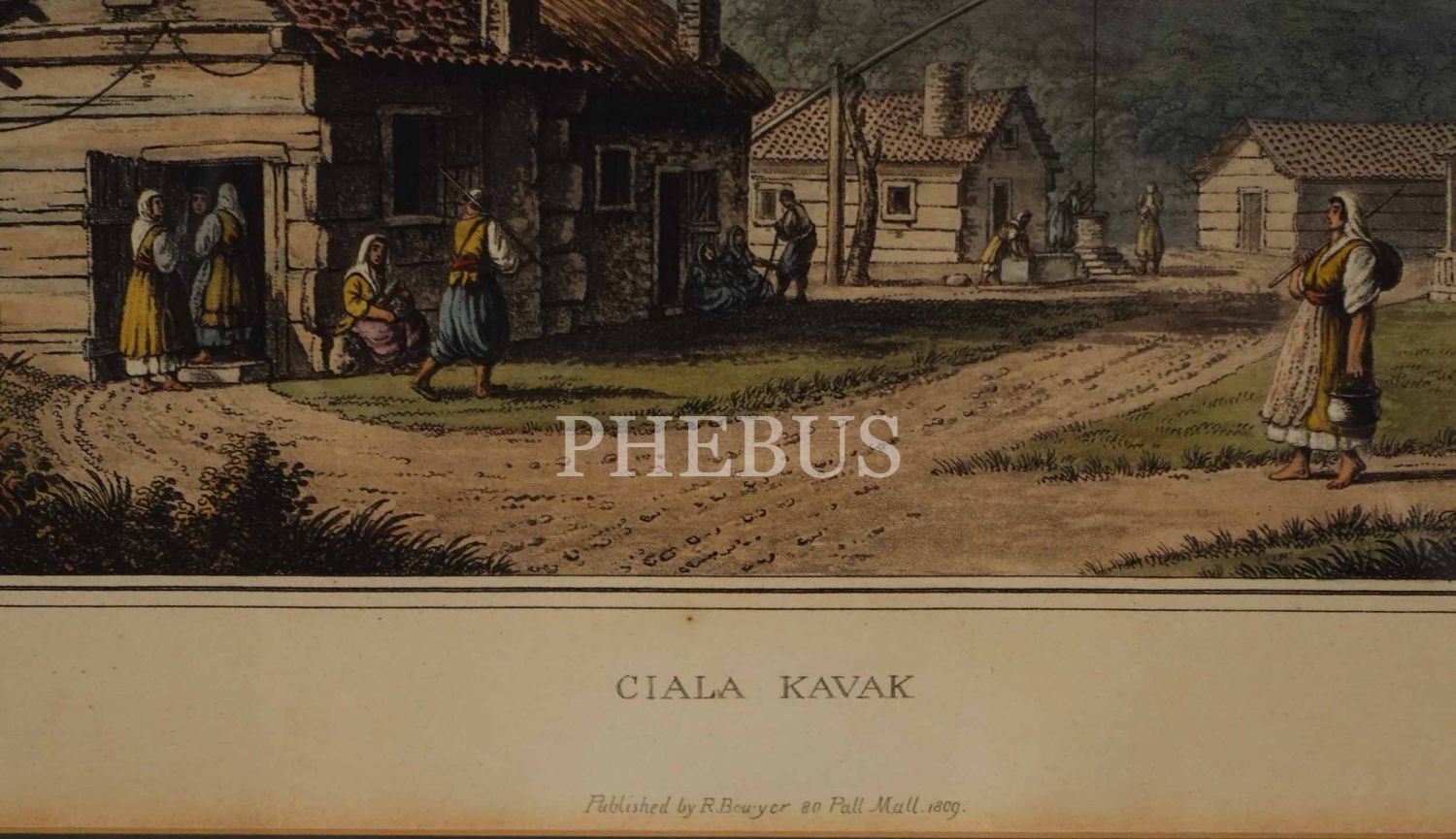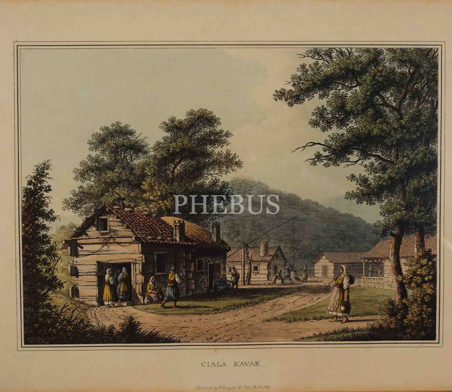 İngilizce başlıklı "Ciala Kavak" konulu taş baskı renkli gravür, (Luigi) Mayer, yayıncı: Robert Bowyer, Pall Mall, 1809, çerçevesiyle birlikte 52x42 cm...