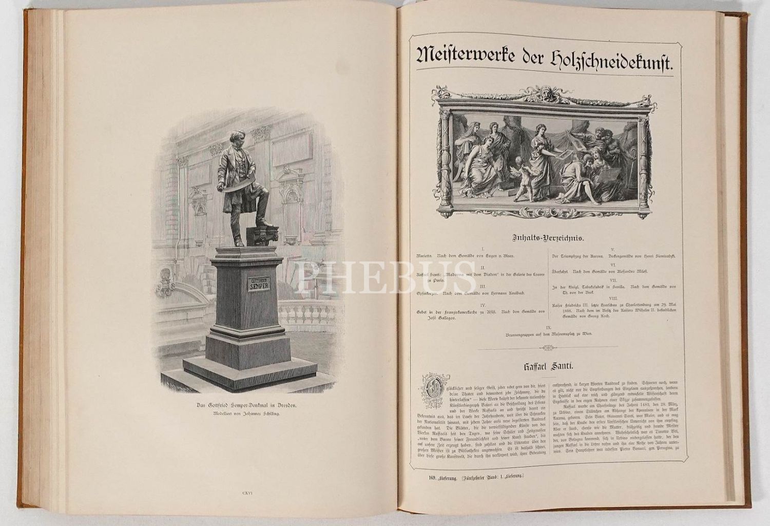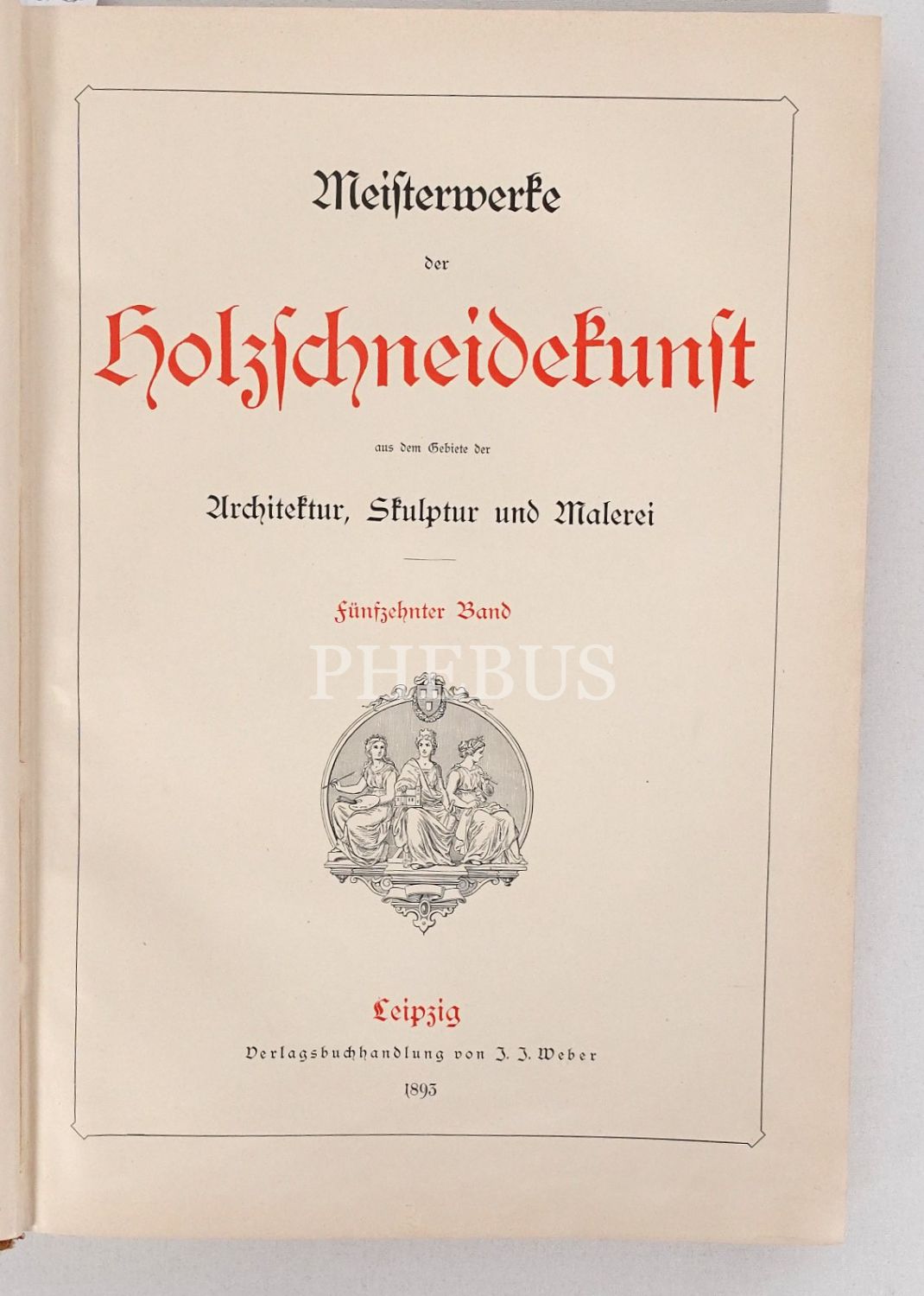 Mimari, heykel, doğa ve resim konulu ahşap oyma baskı gravürlerden nadide seçkileri bir araya getiren Almanca kitap: MEISTERWERKE DER HOLZSCHNEIDEKUNST (15. cilt), Verlagsbuchhandlung von 3. 3. Weber, Leipzih, 1893, 47 sayfa metin + 116 adet gravür, 30x43 cm...