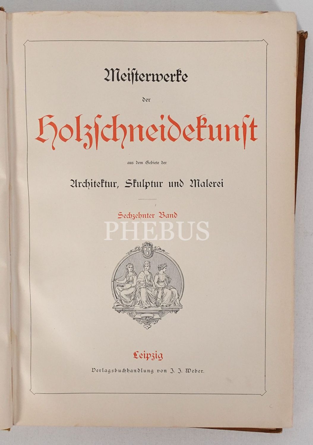 Mimari, heykel, doğa ve resim konulu ahşap oyma baskı gravürlerden nadide seçkileri bir araya getiren Almanca kitap: MEISTERWERKE DER HOLZSCHNEIDEKUNST (16. cilt), Verlagsbuchhandlung von 3. 3. Weber, Leipzih, 1894, 48 sayfa metin + 115 adet gravür, 30x43 cm...