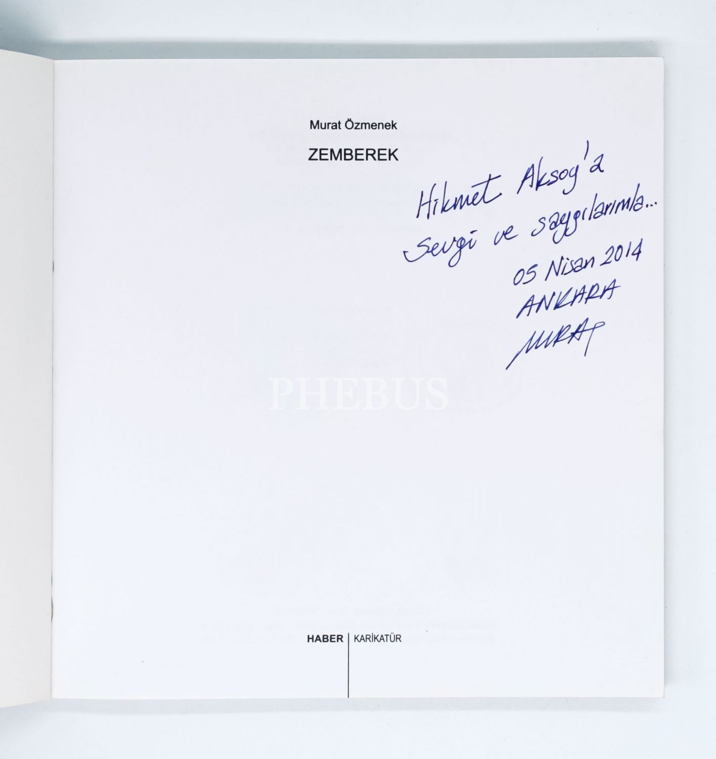 İthaf, "Hikmet Aksoy´a sevgi ve saygılarımla. 05 Nisan 2014 Ankara" şeklindedir.