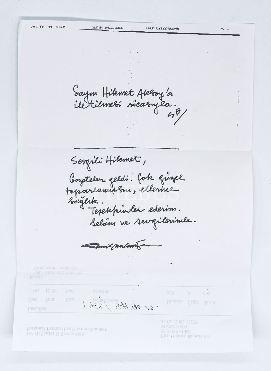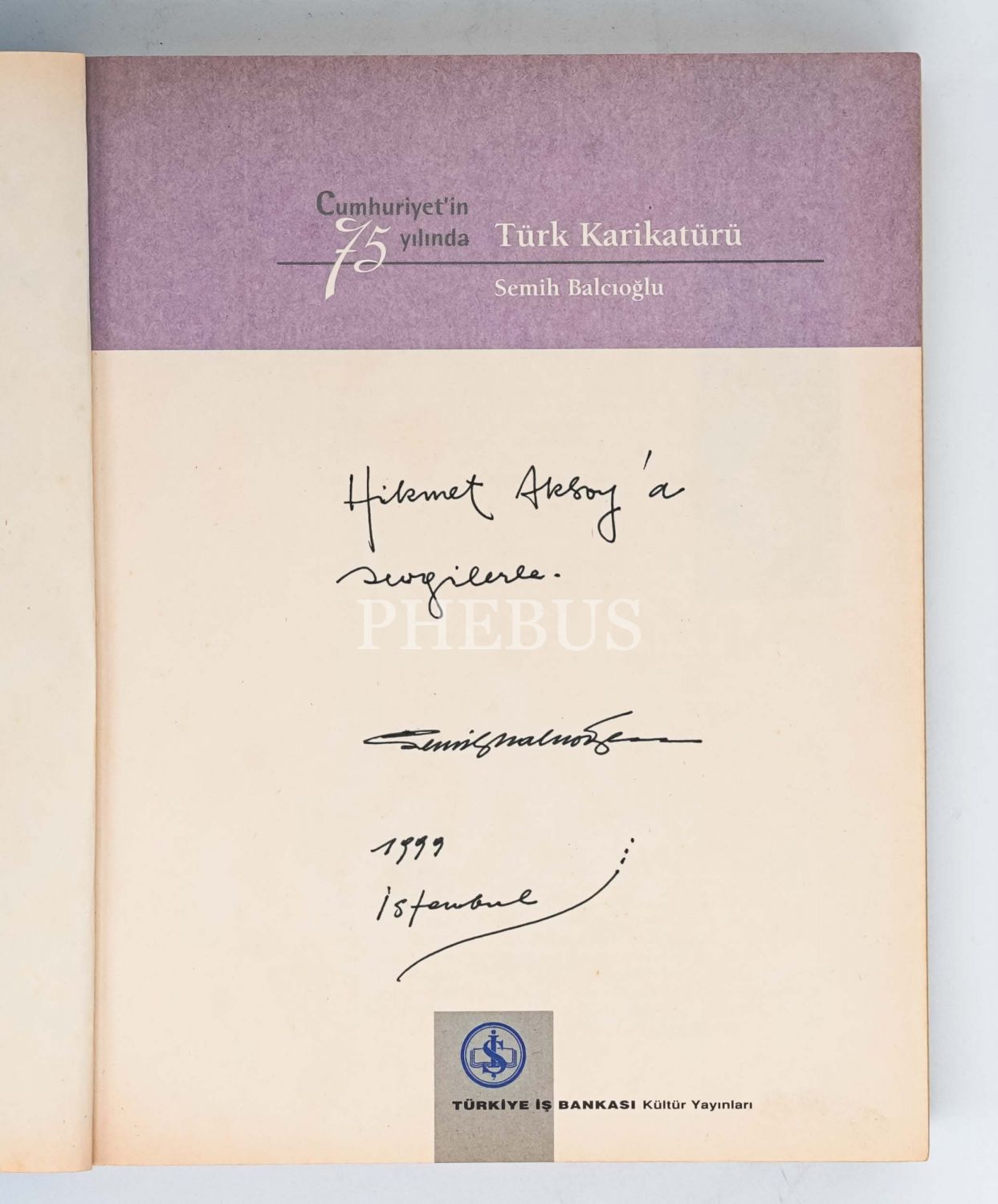 İthaf, "Hikmet Aksoy´a sevgilerle. 1999 İstanbul" şeklindedir. İçerisinde Semih Balcıoğlu tarafından Hikmet Aksoy´a gönderilmiş faks mevcuttur.
