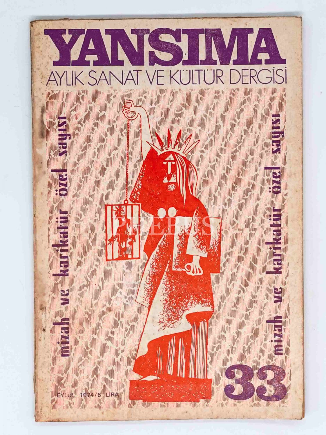 Aylık sanat ve kültür dergisi YANSIMA´nın 3 Eylül 1974 tarihli 33. sayısı, 16x24 cm...