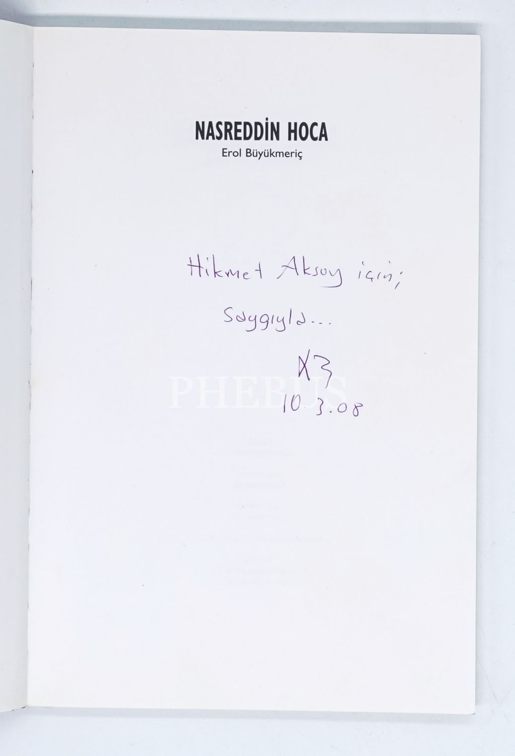 İthaf, "Hikmet Aksoy için saygıyla... 10.3.08" şeklindedir.
