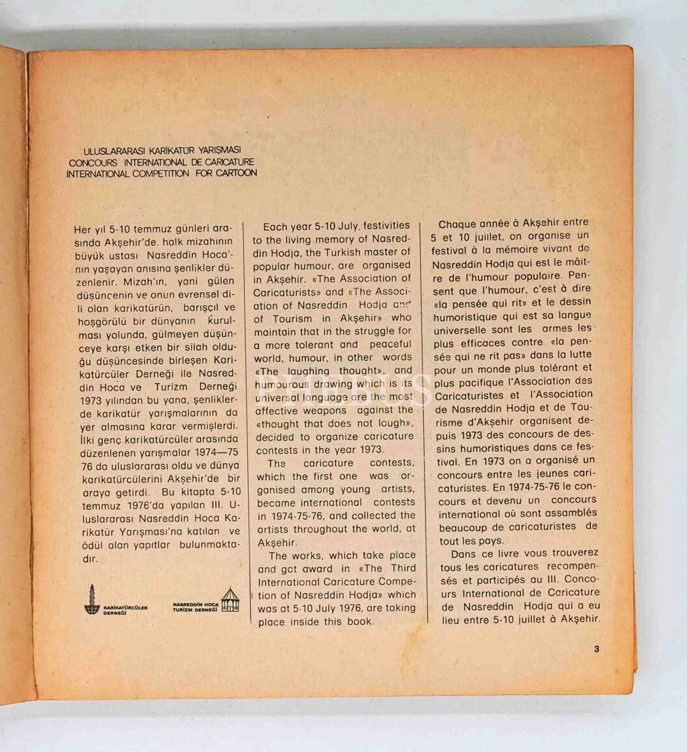 3. ULUSLARARASI AKŞEHİR NASREDDİN HOCA ŞENLİĞİ KARİKATÜRLERİ, Karikatürcüler Derneği, 1977, 249 sayfa, 21x22 cm...