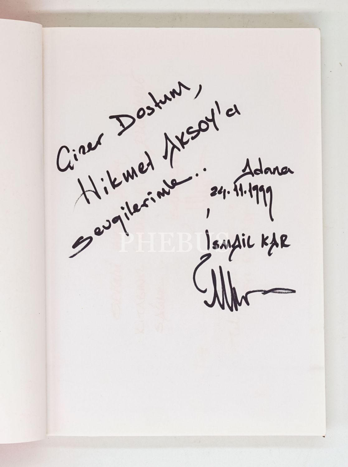 İthaf, "Çizer dostum, Hikmet Aksoy´a sevgilerimle... Adana, 24.11.1999" şeklindedir.