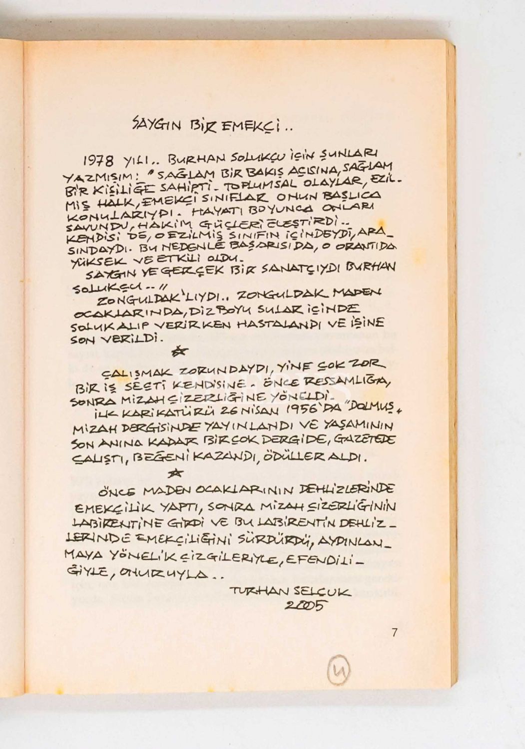 EMEĞİN ÇİZERİ, ÇİZGİNİN EMEKÇİSİ BURHAN SOLUKÇU, Kürşat Coşgun, 2006, Çınar Yayınları, 200 sayfa, 14x20 cm...