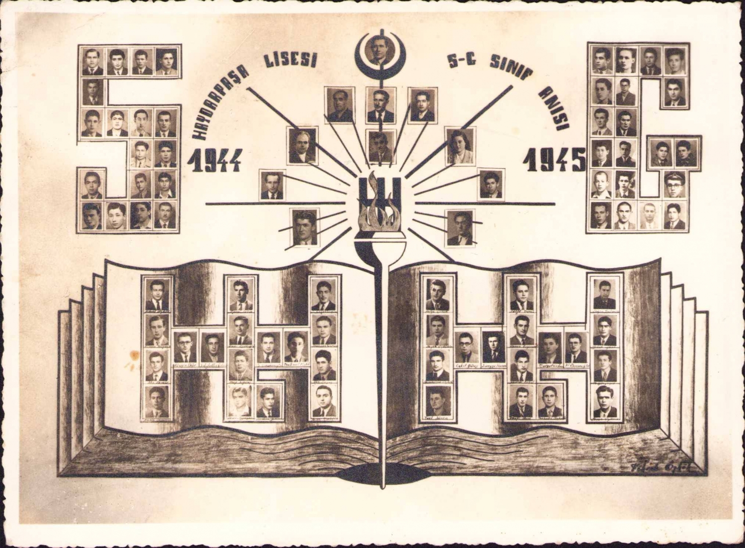Haydarpaşa Lisesi 1944-45 öğretim yılı 5-C sınıf anısı fotokartı, 17x12 cm