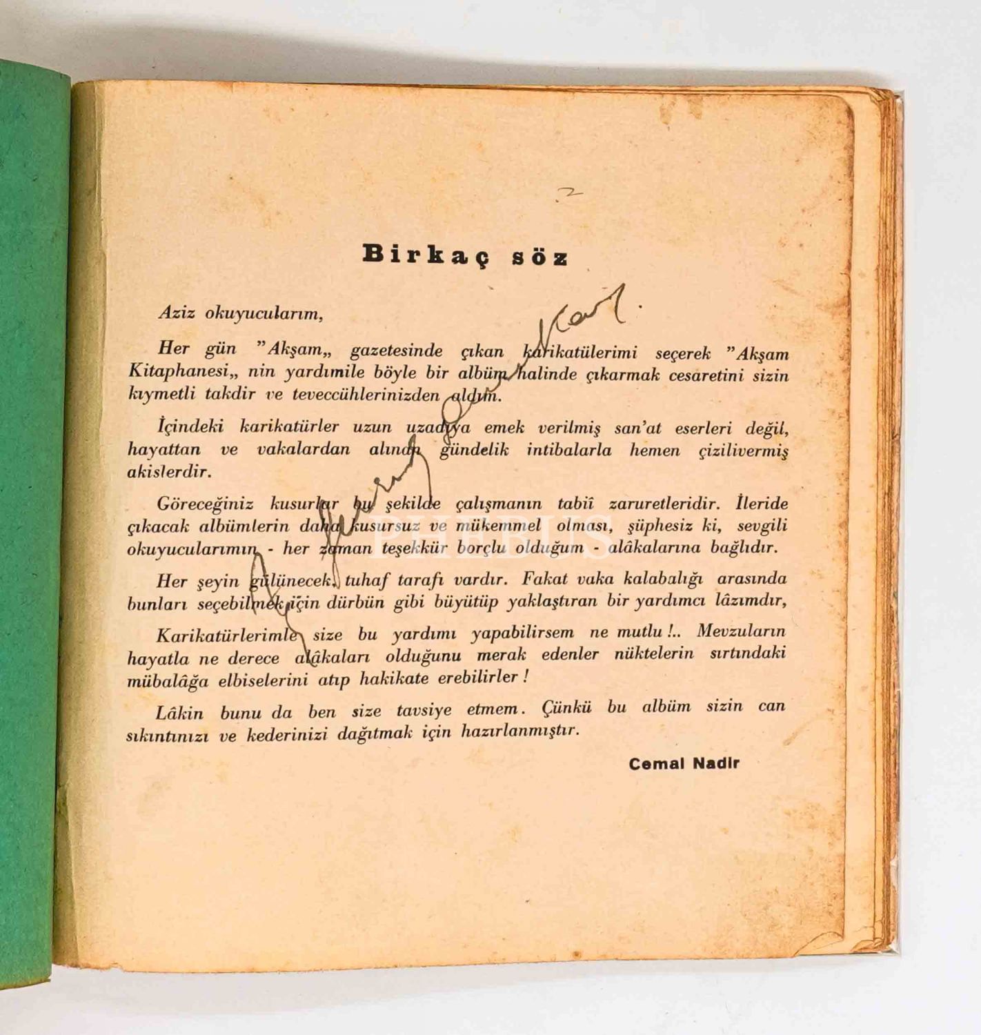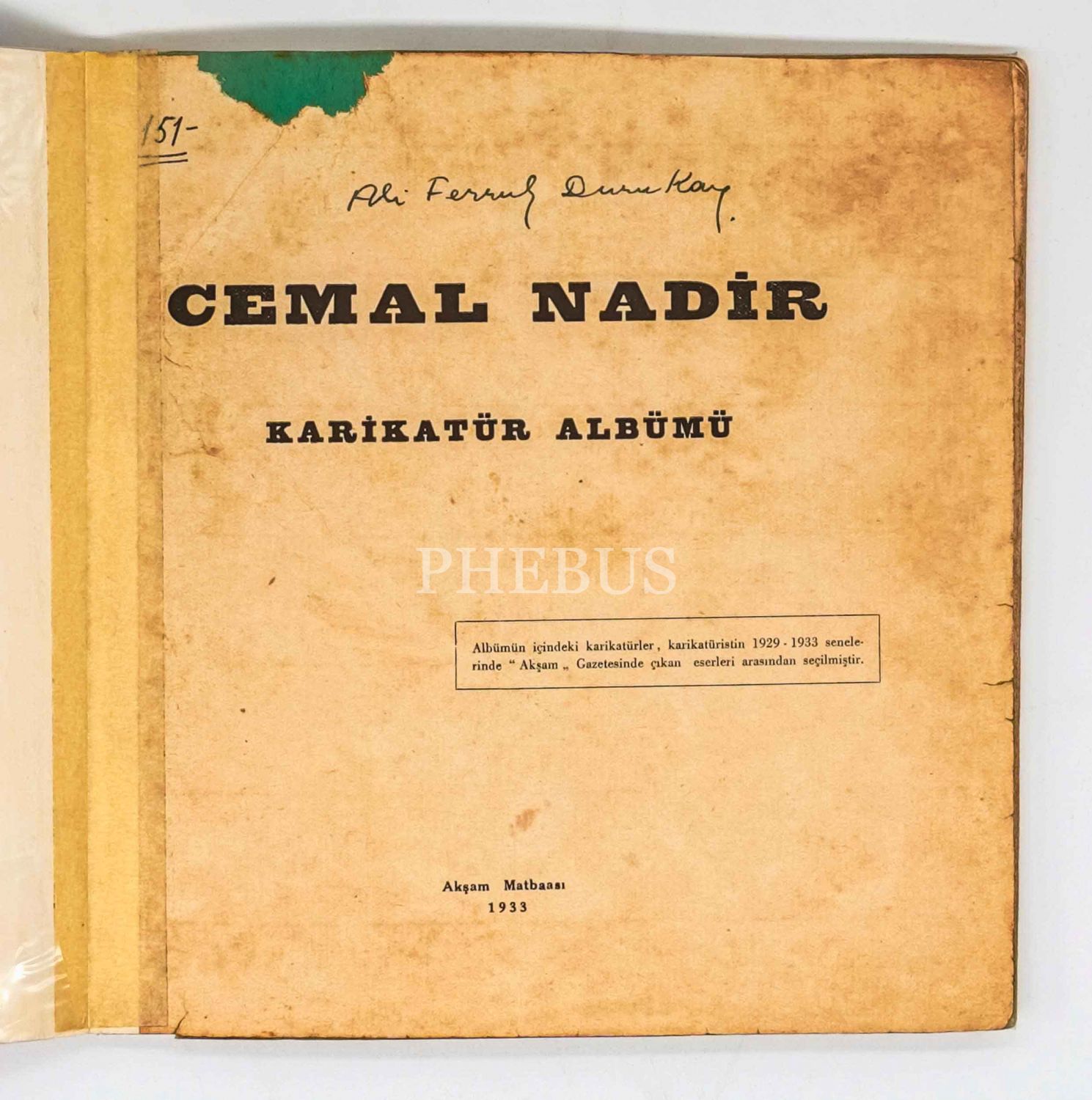 CEMAL NADİR KARİKATÜR ALBÜMÜ, Cemal Nadir Güler, 1933, Akşam Kitaphanesi, 66 sayfa, 17x22 cm...