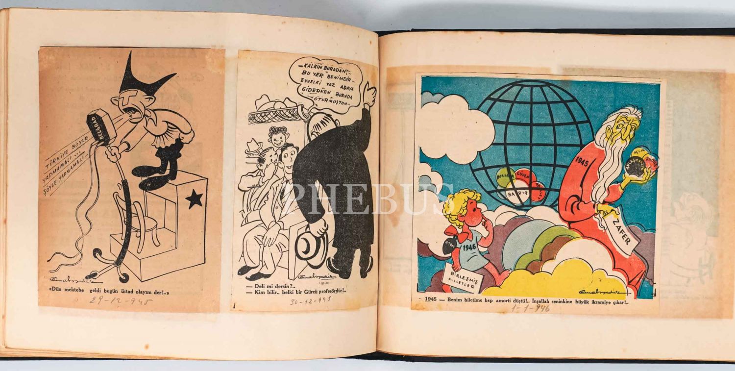 Cemal Nadir Güler´in Akşam ve Cumhuriyet gazetelerinde çıkan karikatürlerinin bir kısmından meydana gelen albüm, 576 sayfa, 31x25 cm...