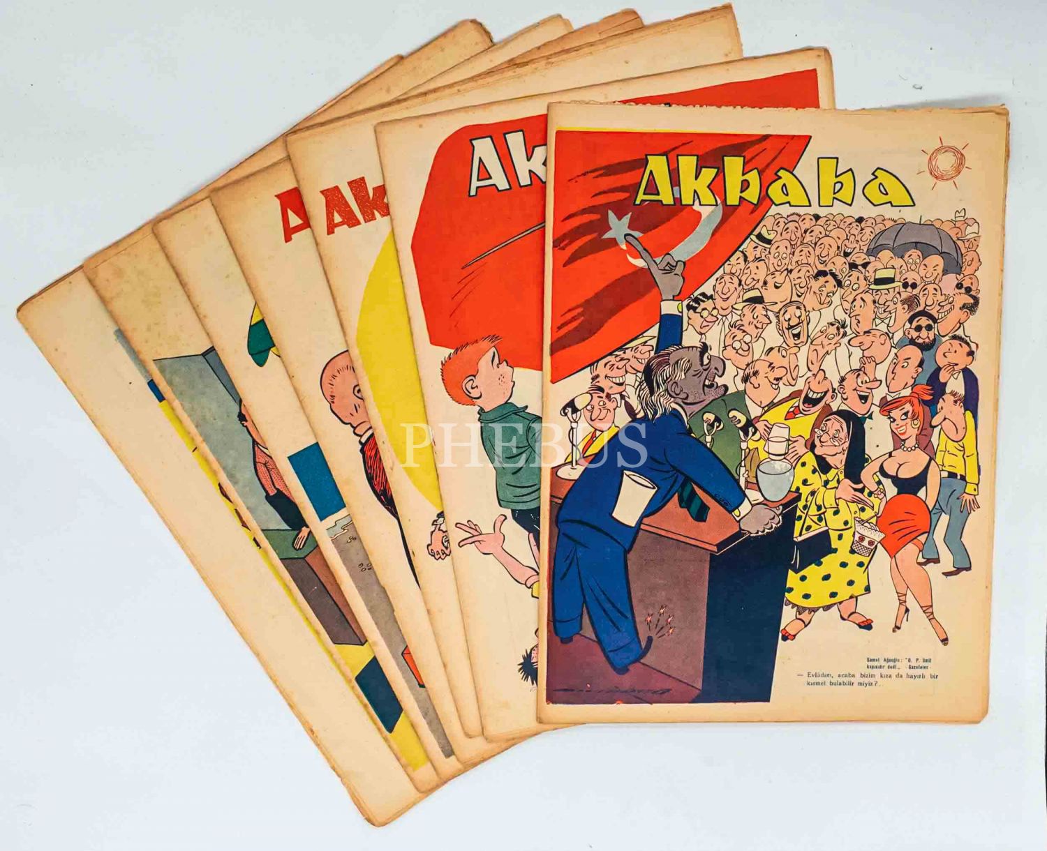 Siyasi mizah gazetesi AKBABA´nın 28 Eylül 1950- 13 Ağustos 1959 tarihleri arasında yayınlanan 387-393 arası sayıları...