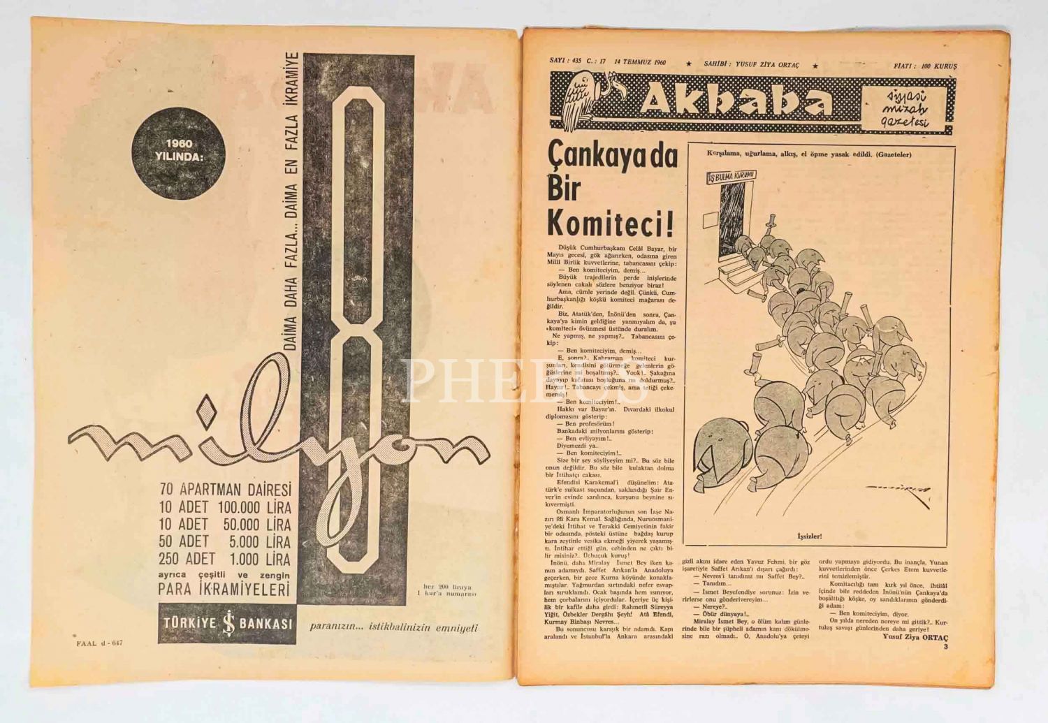 Siyasi mizah gazetesi AKBABA´nın 30 Haziran 1960- 14 Temmuz 1960 tarihleri arasında yayınlanan 433-435 arası sayıları...