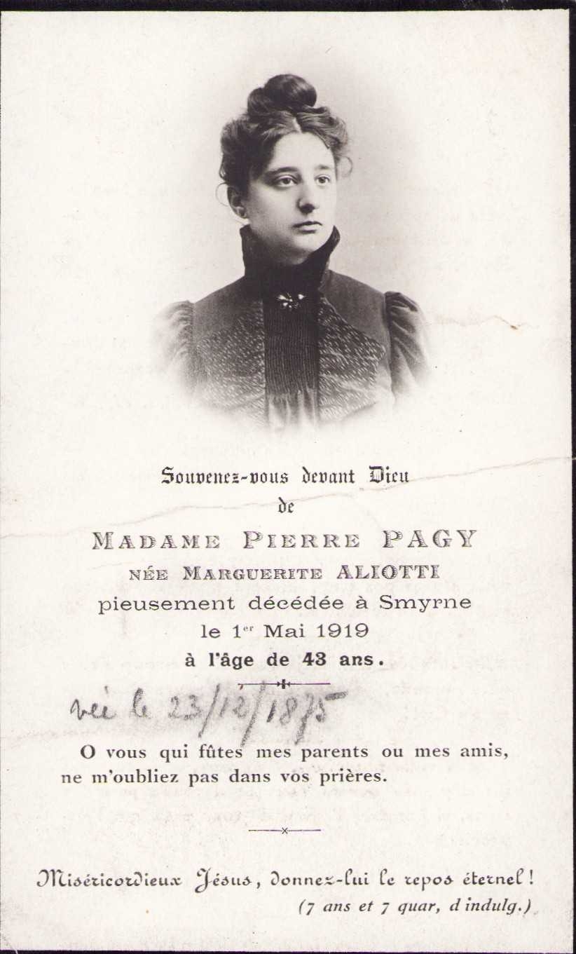 Smyrne Madame Pierre Pagy, kilise anma programı, 12x7 cm