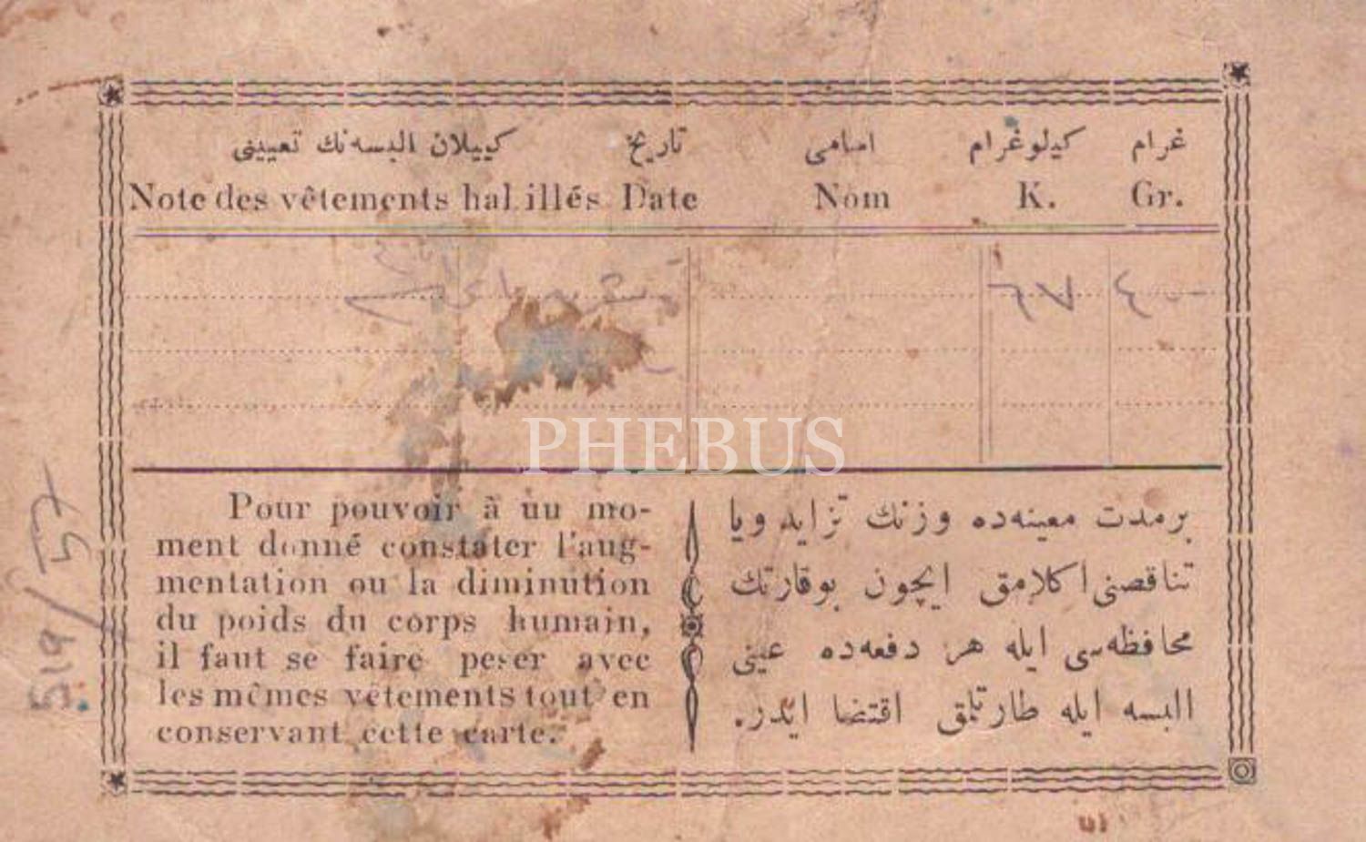 İstanbul Sirkeci´de Beşir Kemal Halep Eczahanesi´ne ait Osmanlıca ve Fransızca iş yeri kartı, 11x8 cm...