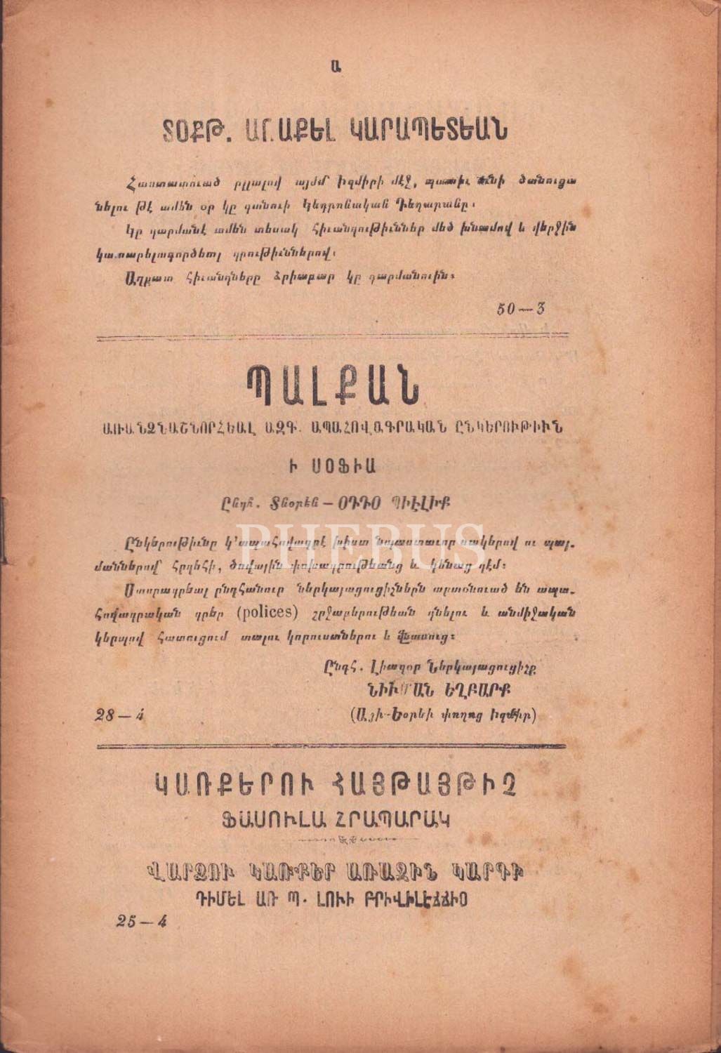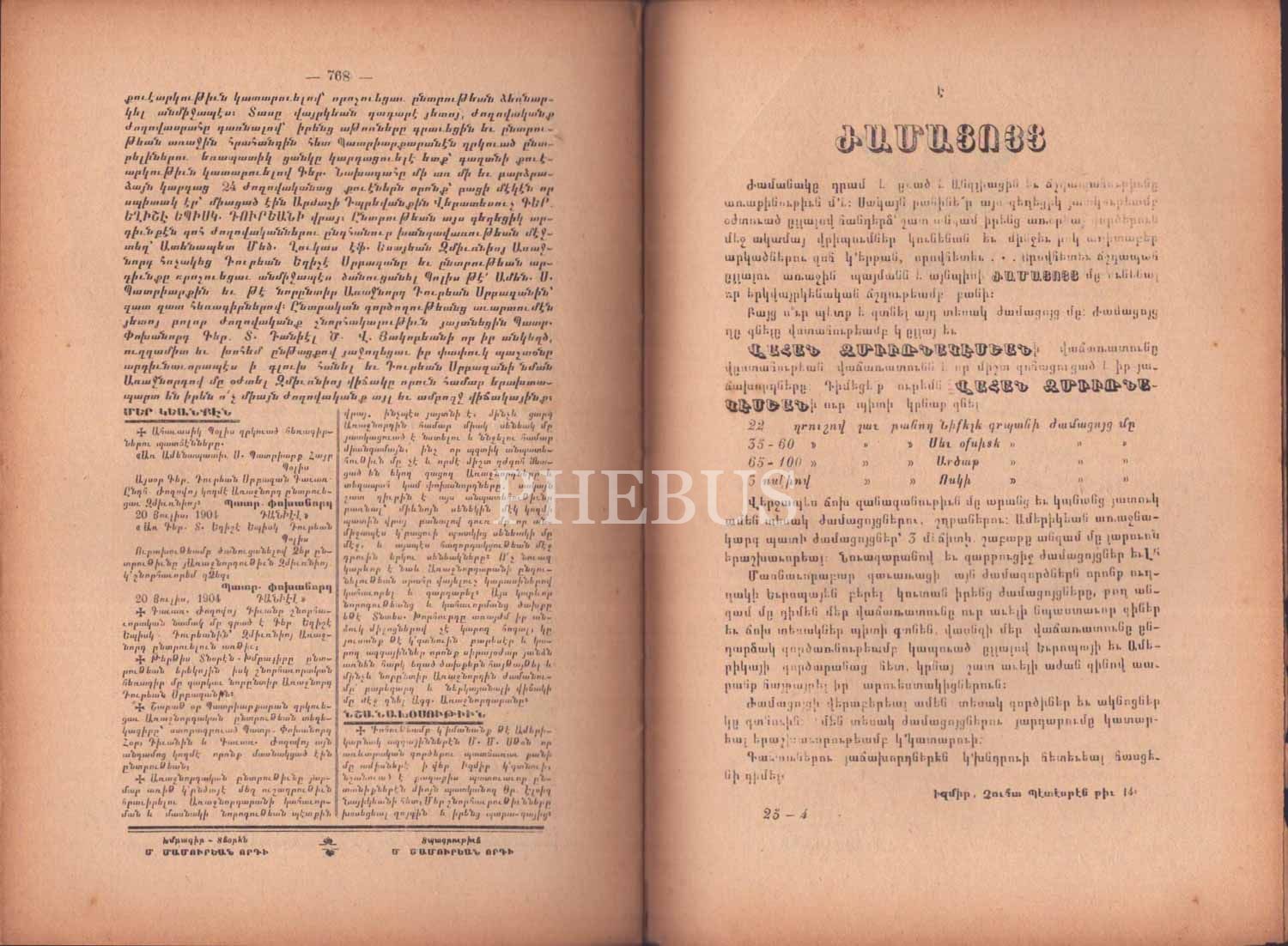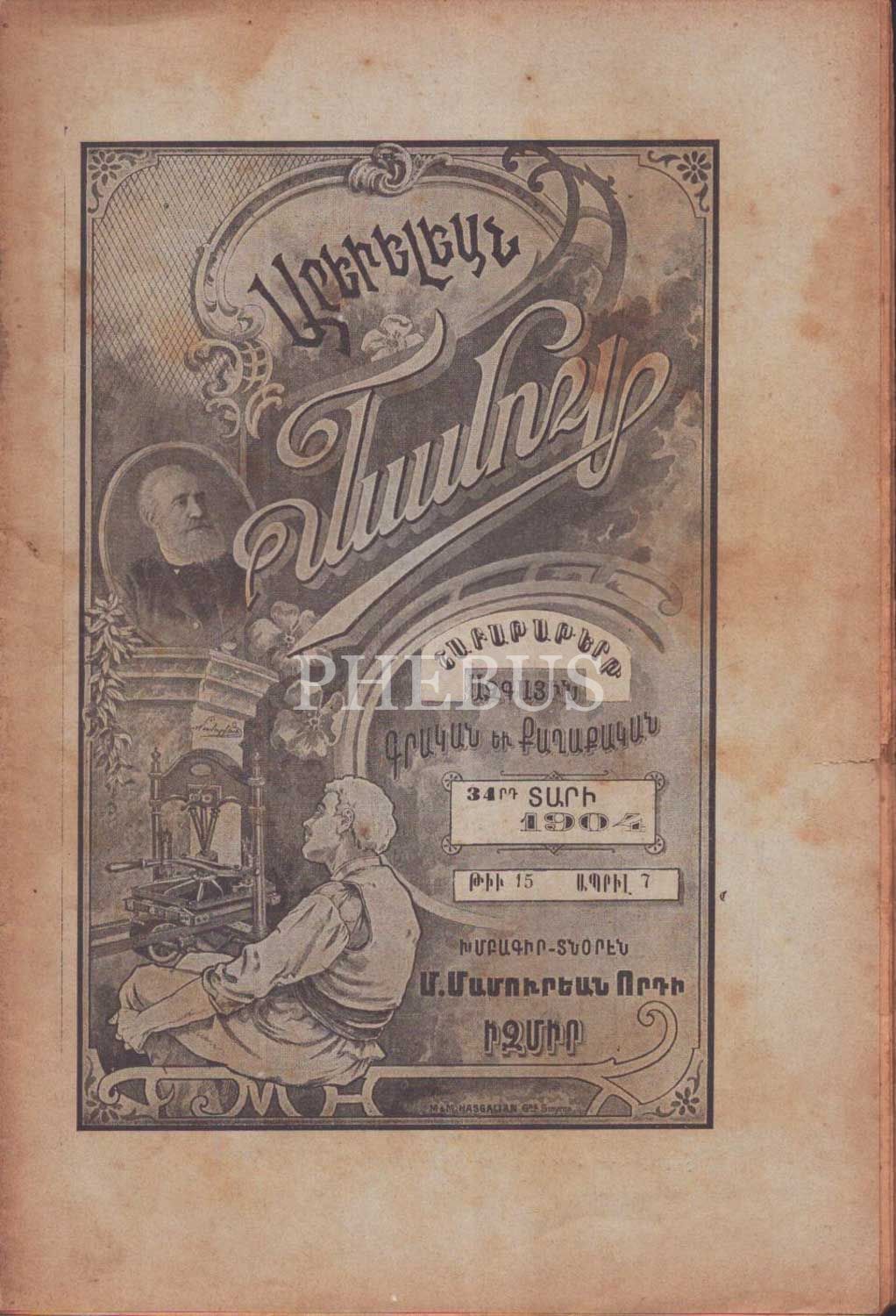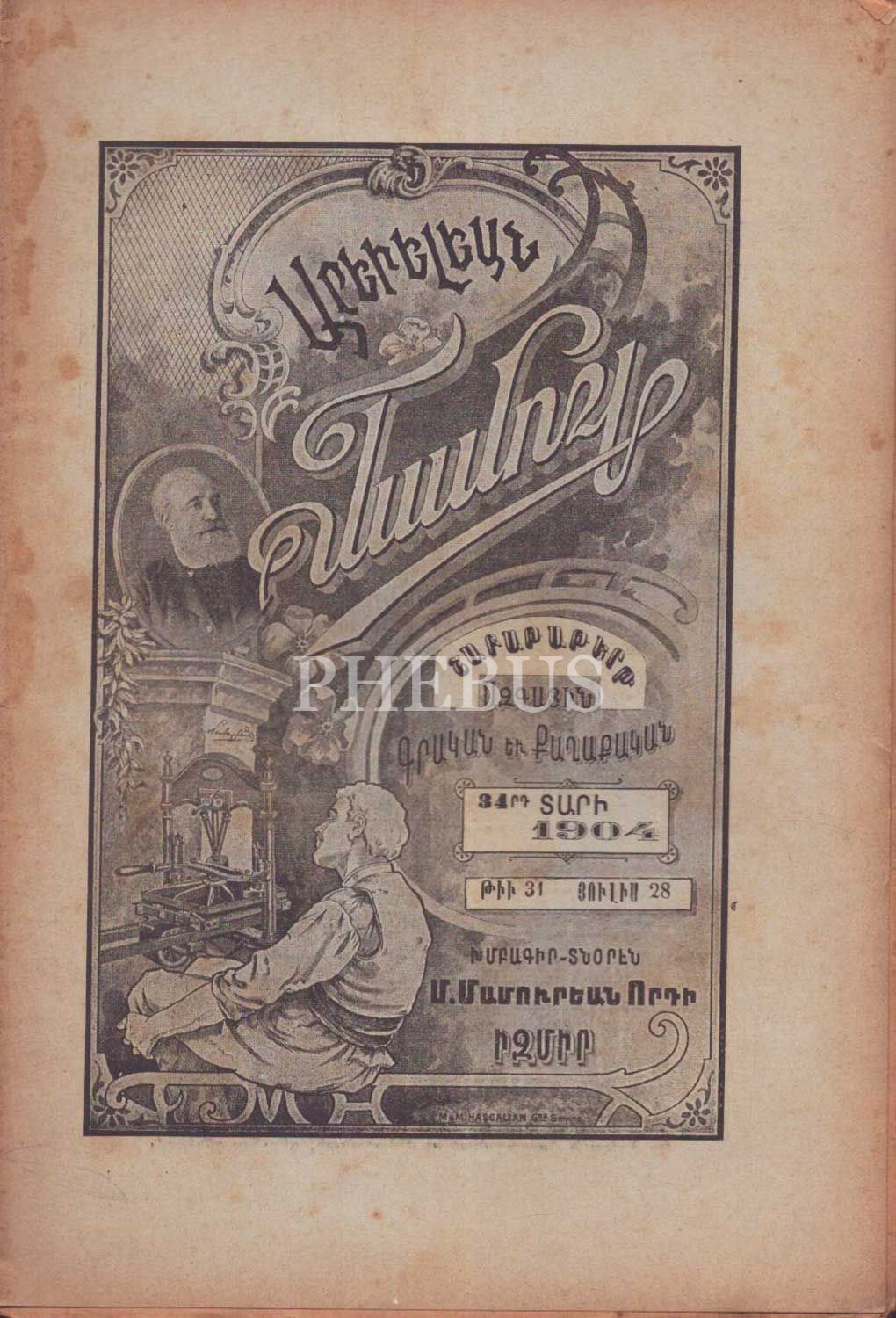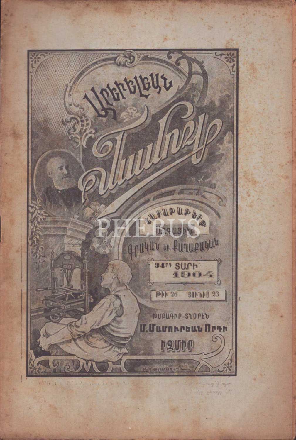 Ermenice AREVELYAN MECMUASI´nın 194 tarihli 15, 26 ve 31. sayıları, İzmir M. Mamuryan Matbaası, 16x25 cm...