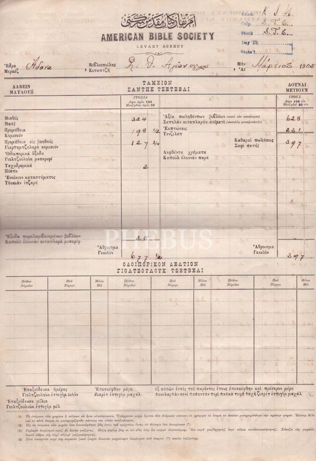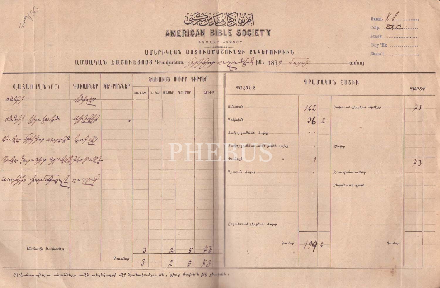 Amerikan Kitab-ı Mukaddes Şirketi (American Bible Society) antetli 2 adet Ermenice fatura, 34x22 cm...