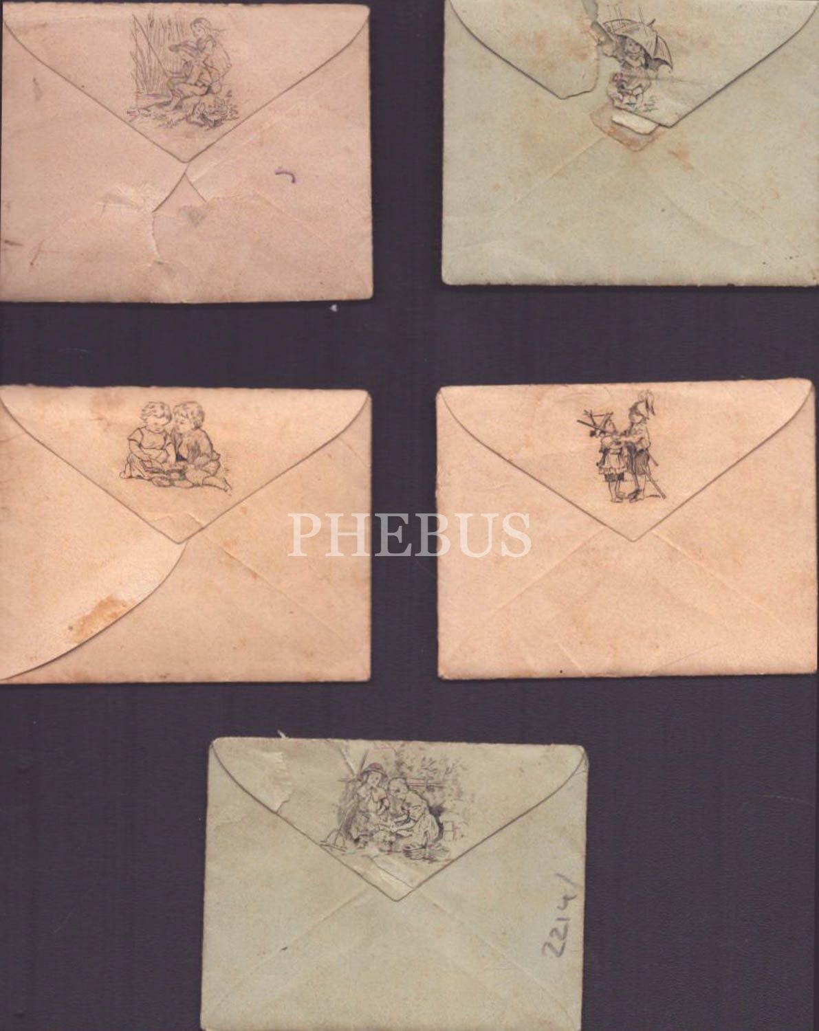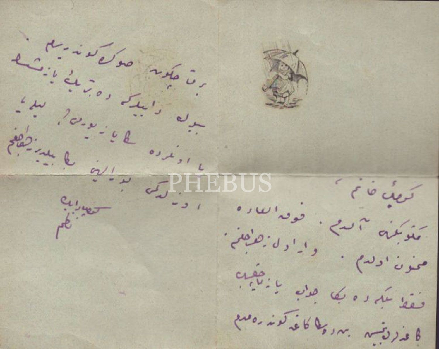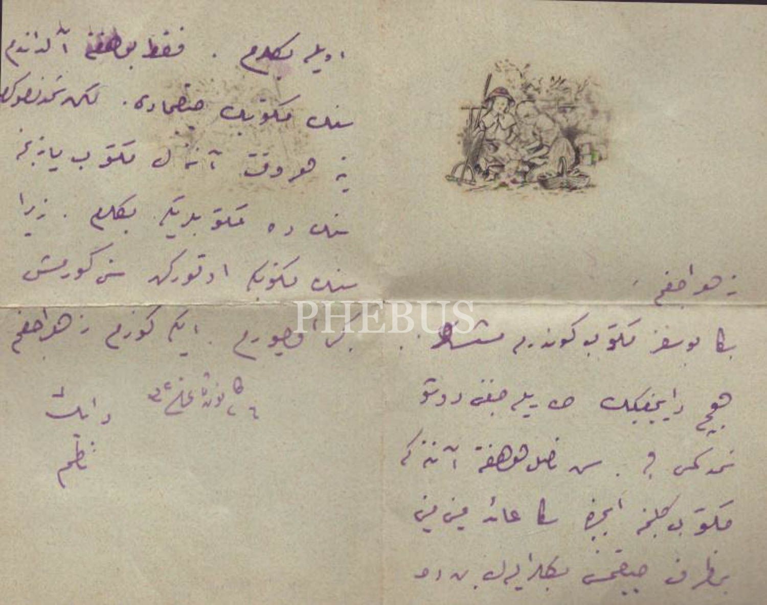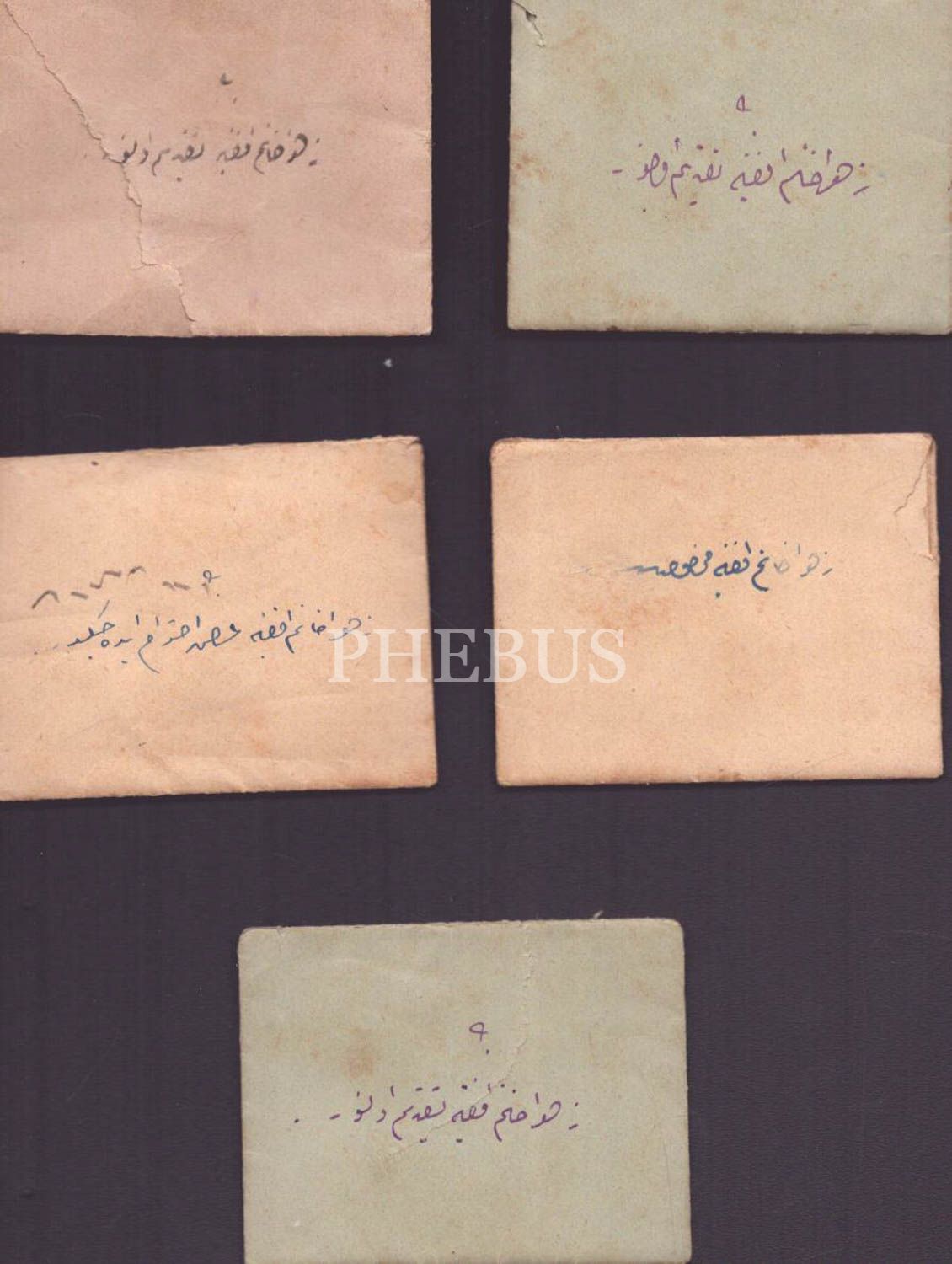 Dayısının, yeğeni Zehra Hanım´a yazdığı 5 adet minik, figürlü zarf içinde Osmanlıca mektup, 7x6 cm...