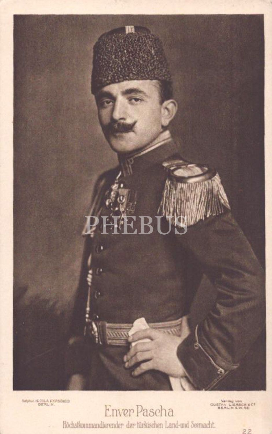Enver Paşa, "Enver Pascha Höchstkommandierender der türkischen Land-un Seemach", ed.: Gustav Liersch& Co, Berlin, Alman baskı, 14x9 cm...