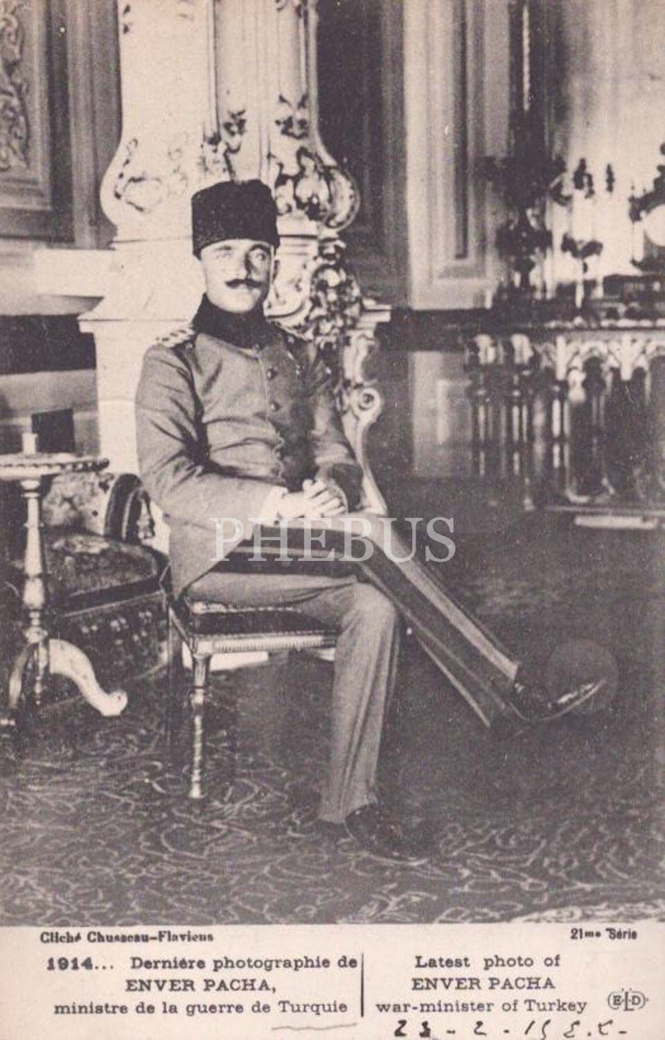 Enver Paşa´nın son fotoğrafı, "Latest photo of Enver Pacha war-minister of Turkey", Fransızca ve İngilizce, ed.: E. L. D., 14x9 cm...