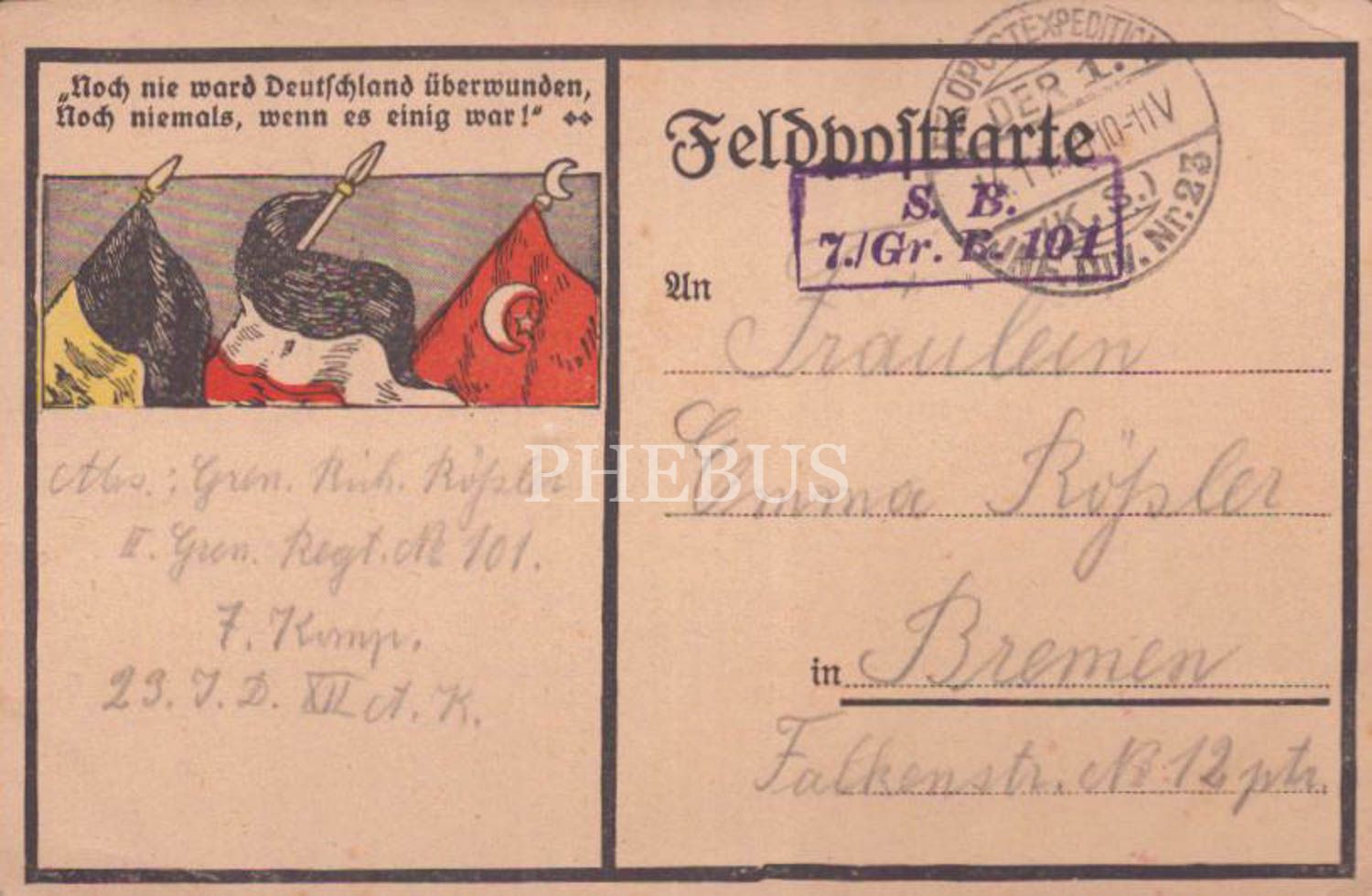1. Dünya Savaşı İttifak Devletleri bayrakları, postadan geçmiş, 14x9 cm...