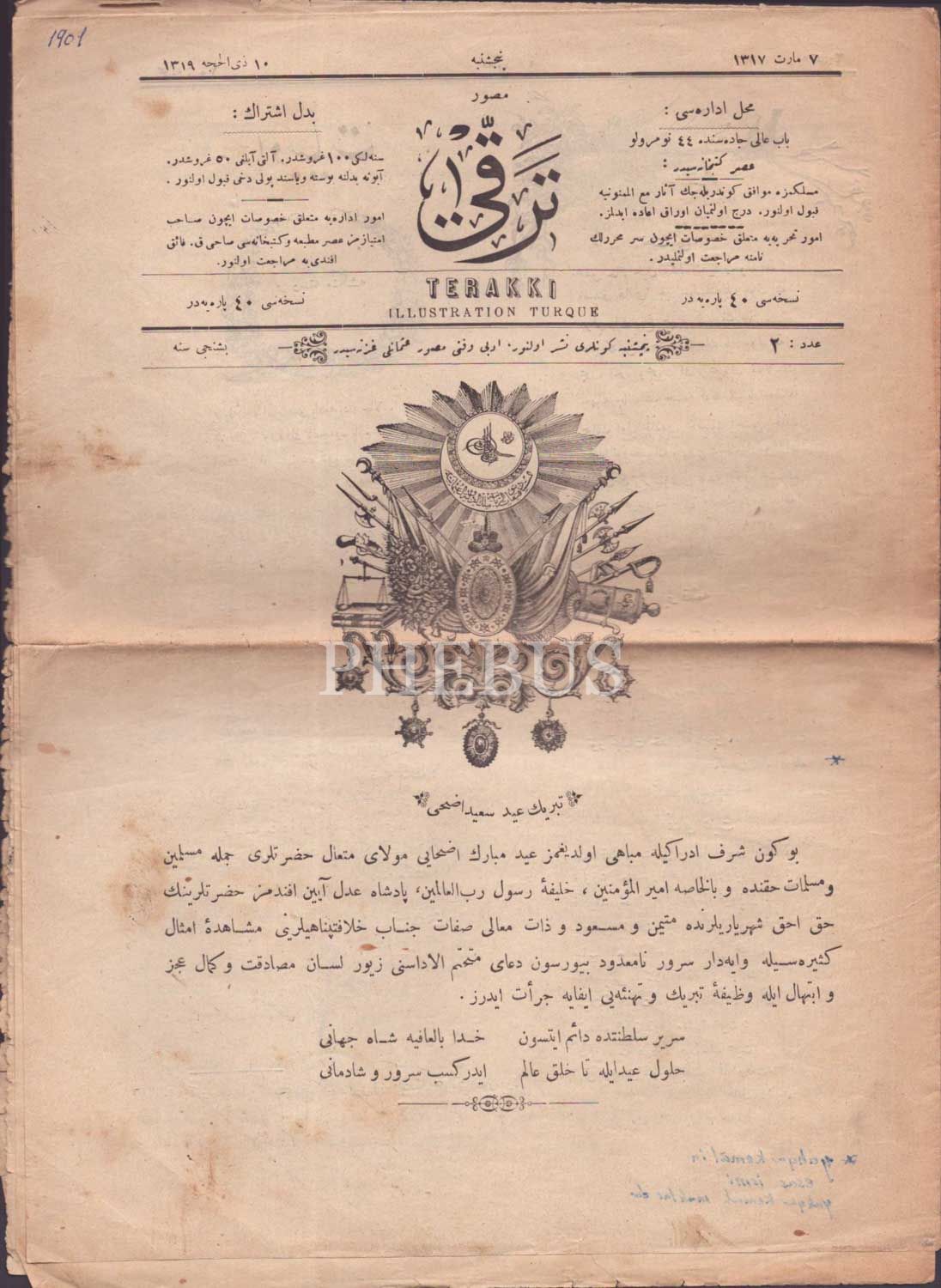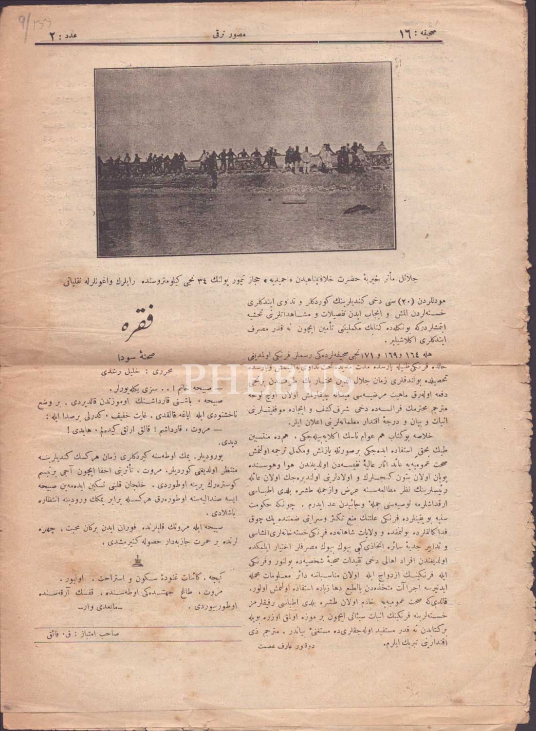 Yahya Kemal Beyatlı´nın asıl ismi olan Agah Kemal imzasıyla 18 yaşında kalem aldığı "Hüsn-Gönül" adlı şiirinin yer aldığı, TERAKKİ dergisinin 10 Zilhicce 1319 tarihli sayısı, 4sayfa, 25x35 cm...