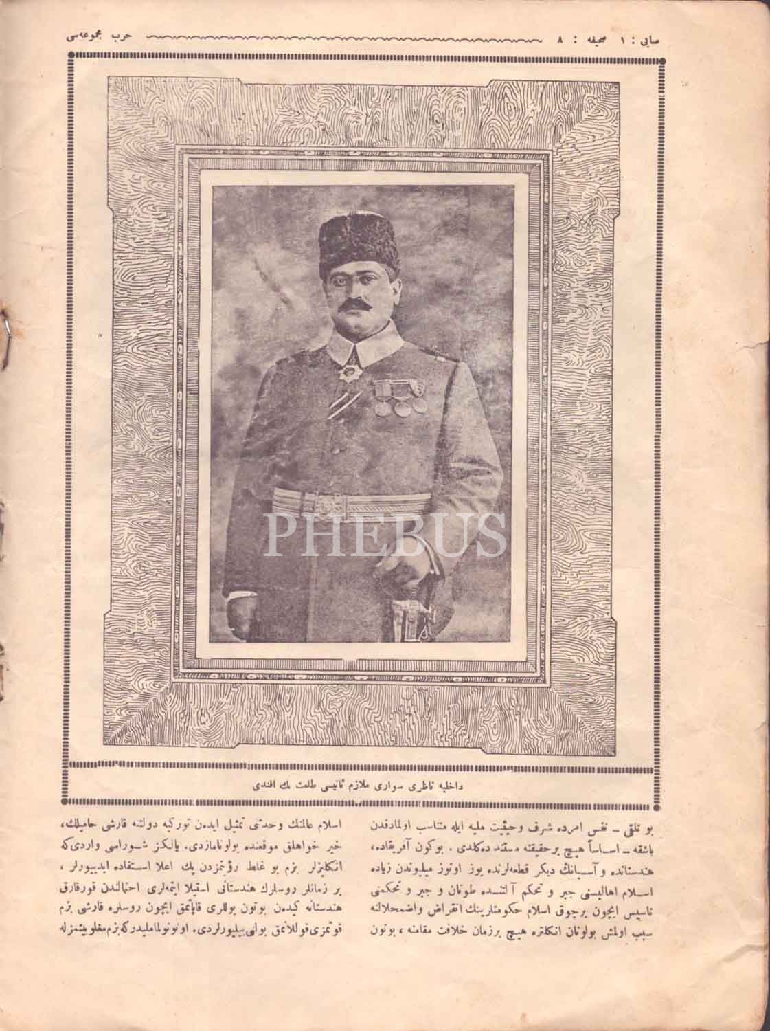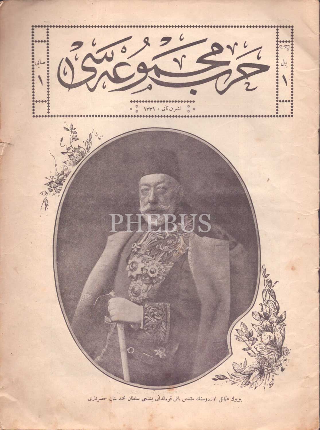 "Büyük Osmanlı Ordusunun mukaddes baş kumandanı Beşinci Sultan Mehmed Han Hazretleri" başlıklı kapağıyla HARP MECMUASI´nın ilk sayısı, 16 sayfa, 25x33 cm...