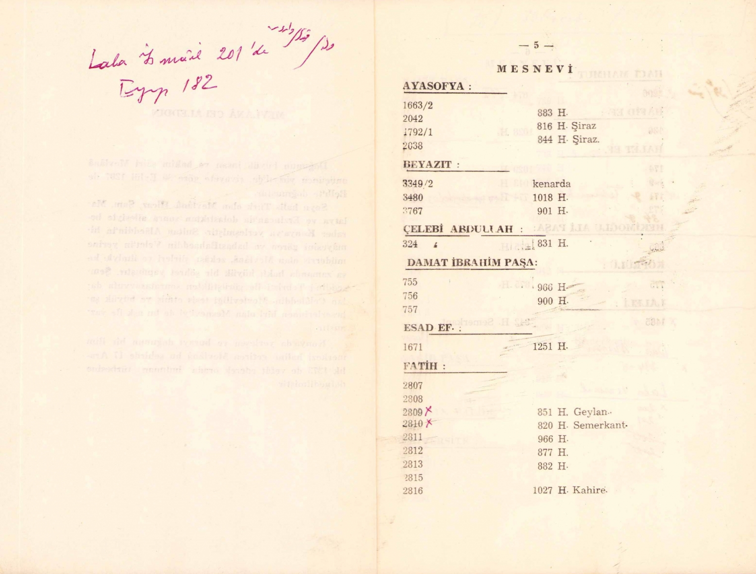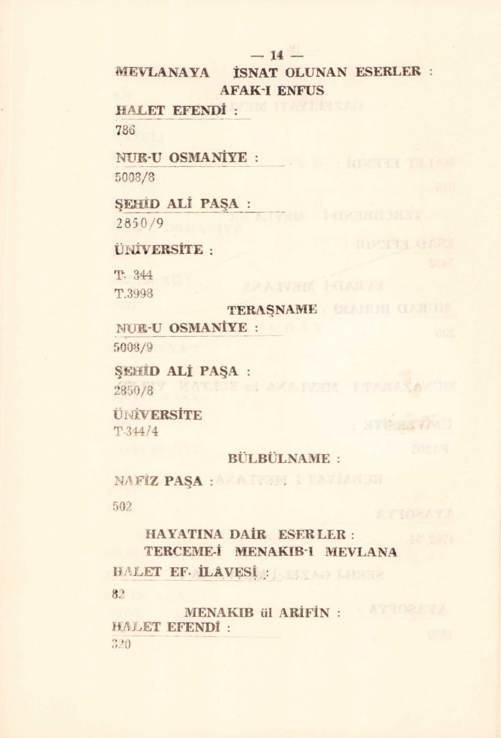 1960 Mevlana Celaleddin Seçme Eserler Sergisi, Süleymaniye Kütüphanesi, Beyazıt Umumi Kütüphanesi Matbaası, İstanbul, 1960, 14 sayfa, 14x20 cm