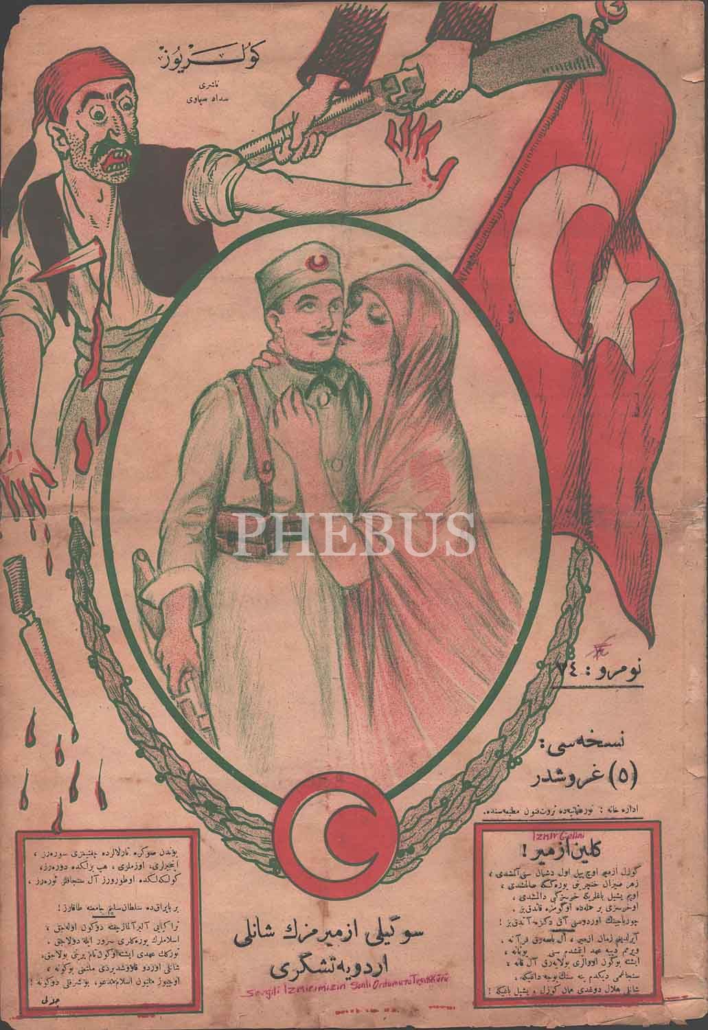 "Sevgili İzmir´imizin şanlı orduya teşekkürü" manşetli Güleryüz dergisinin 74 numaralı sayısı, 4 sayfa, 28x40 cm...