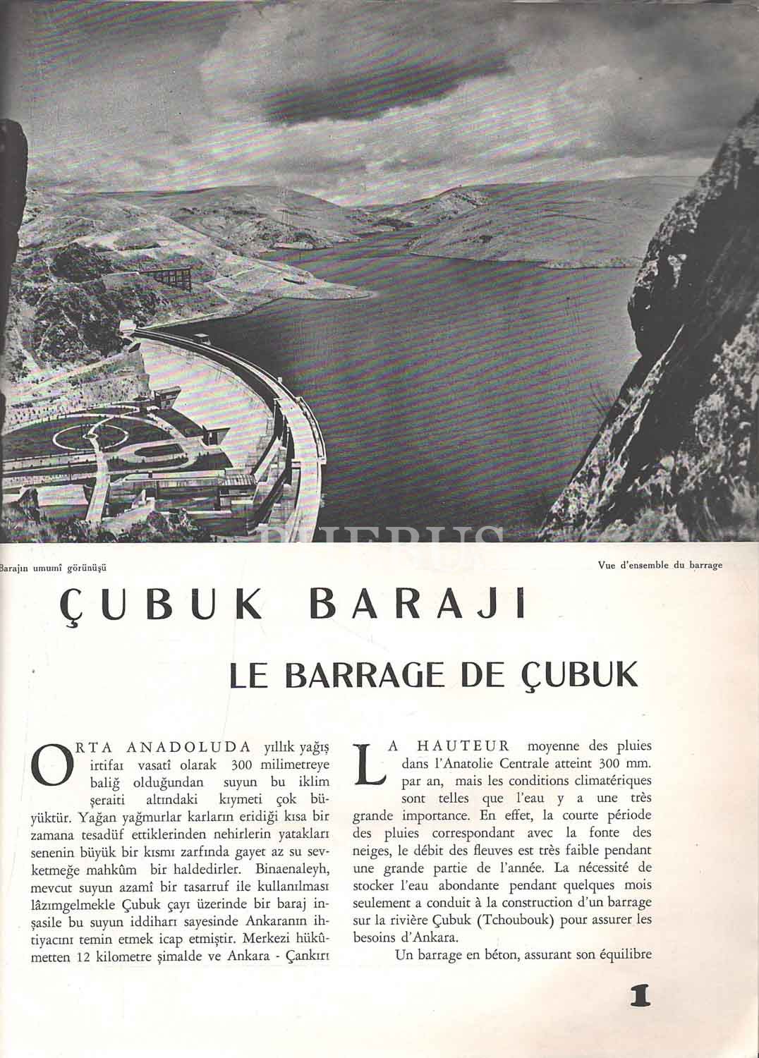 Türkçe-Fransızca ÇUBUK BARAJI / LE BARRAGE DE ÇUBUK, T.C. Nafia Vekâleti Neşriyatı Seri 5 - Sayı 4, 20 sayfa, 24x32 cm...