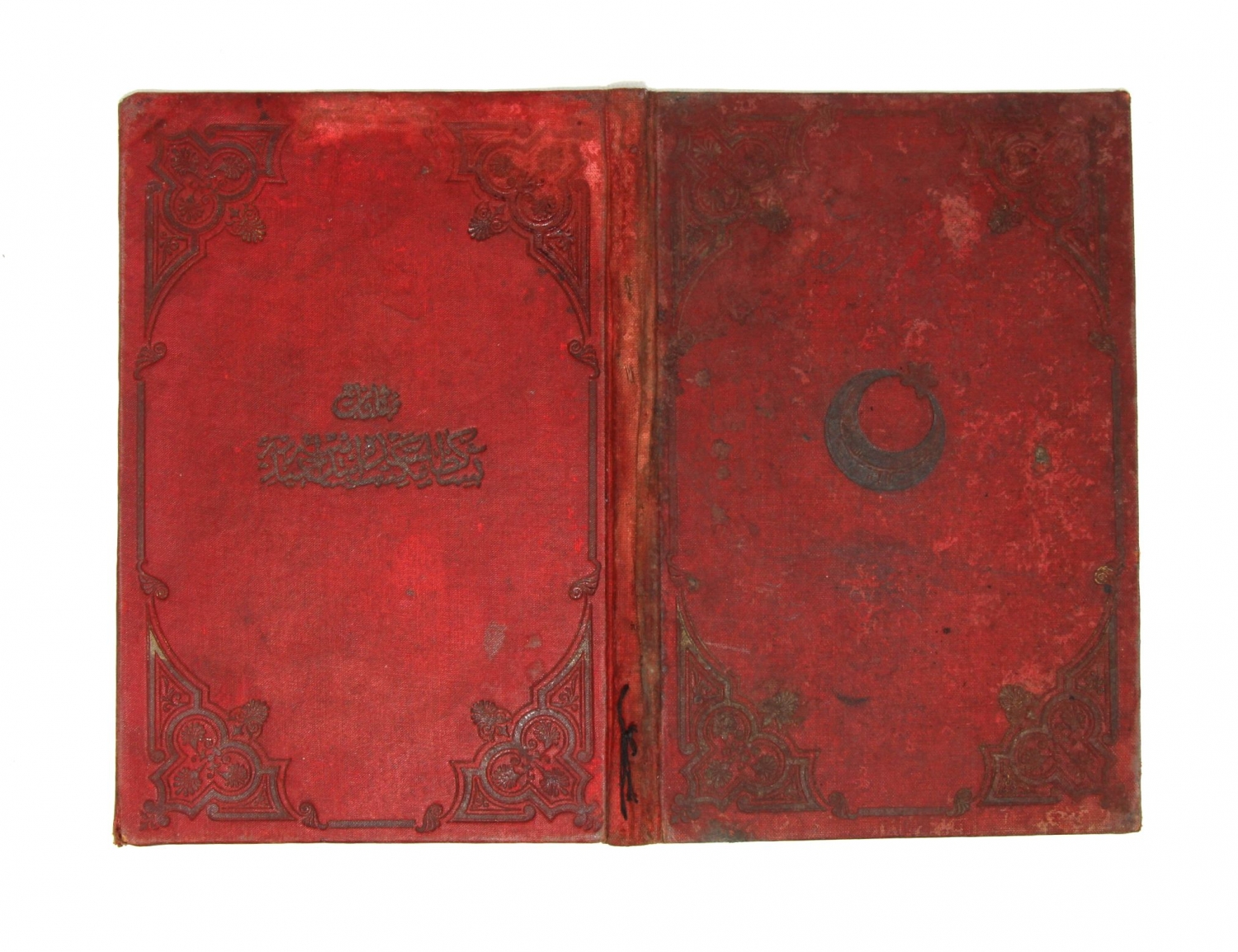Osmanlı Beşiktaş Mektebi İdadisi Mükafat cildi, diğer yüzü ay yıldız, 11x17 cm