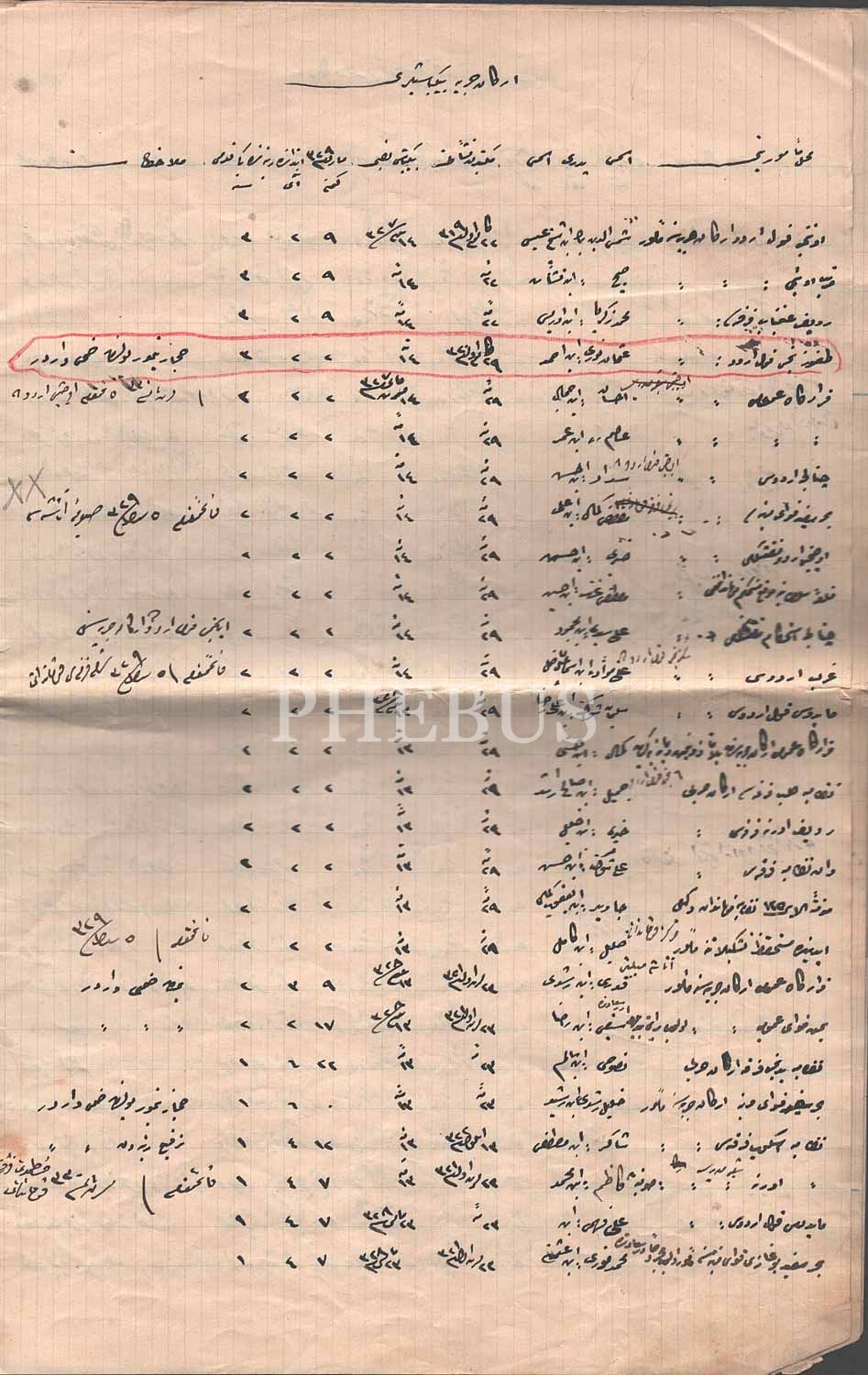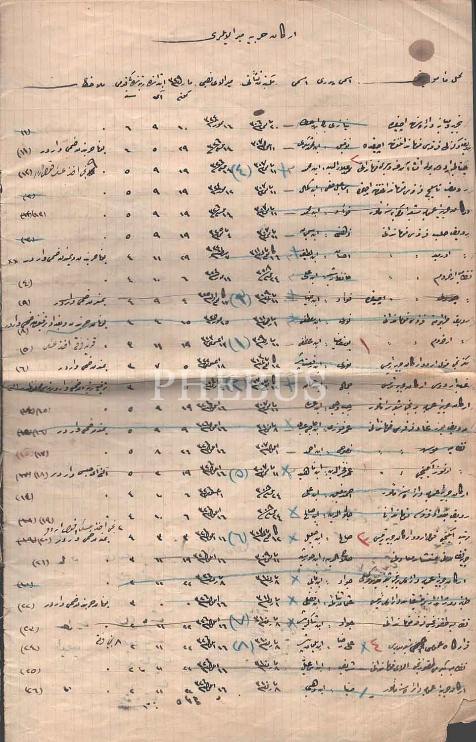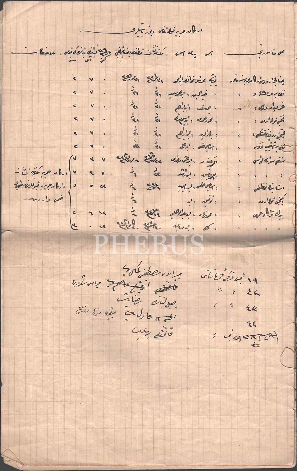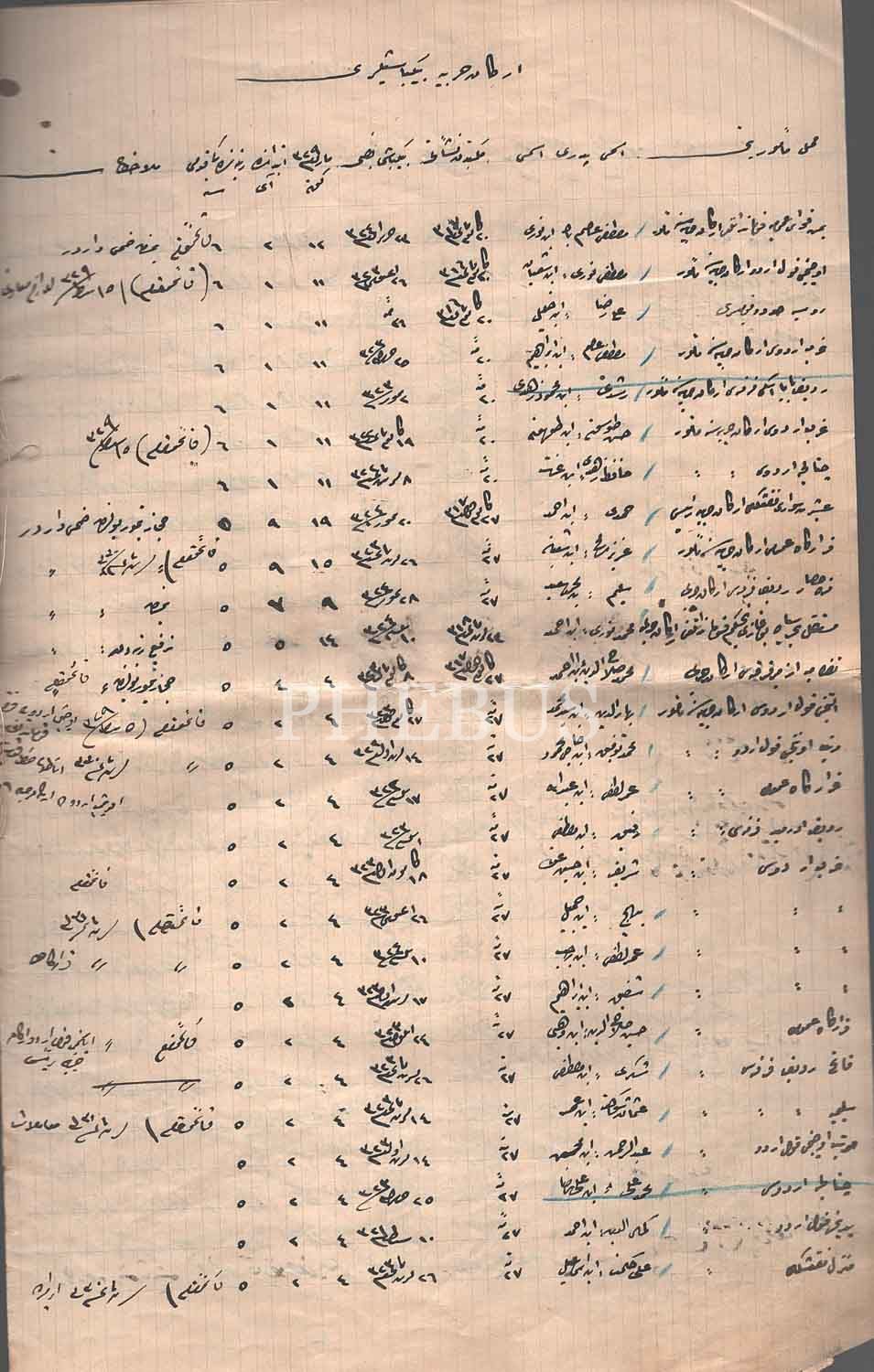 Mustafa Kemal Atatürk´ün Birinci Cihan Harbi öncesinde henüz binbaşı iken kaydedildiği, Osmanlı ordusundaki Erkân-ı Harbiye subaylarının el yazması Osmanlıca görev ve kayıt listesi, 1329 tarihli, 11 sayfa, 21x33 cm...