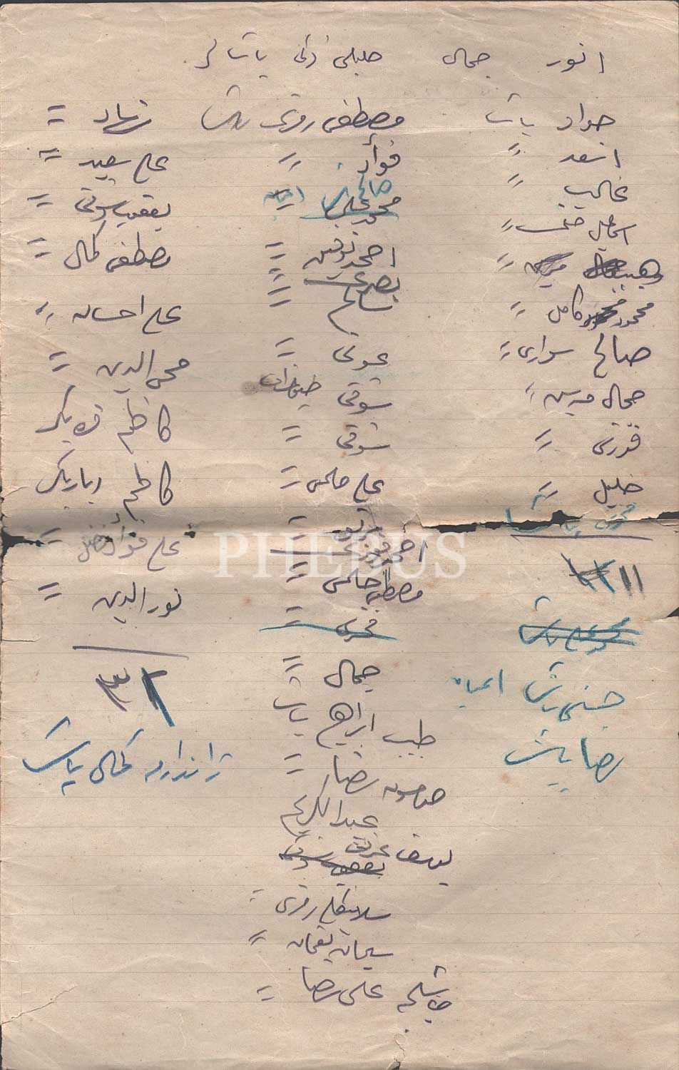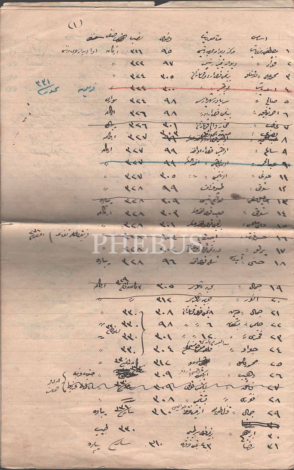 Mustafa Kemal Atatürk'ün Birinci Cihan Harbi'nde Çanakkale'de 19. Fırka Kumandanı olarak kaydedildiği, İttihat Terakki liderleri Enver ve Cemal Paşa'ların da isimlerinin bulunduğu Osmanlı Erkân-ı Harbiyesi'ndeki Paşaların Osmanlıca el Yazması kayıt listesi, 6 sayfa, 21x33 cm...