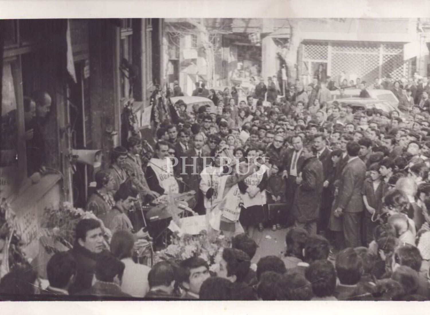 Kızılderili şarkıcıların renk kattığı bir grevden muhabir objektifine yansıyan bir enstantane, 18x13 cm...