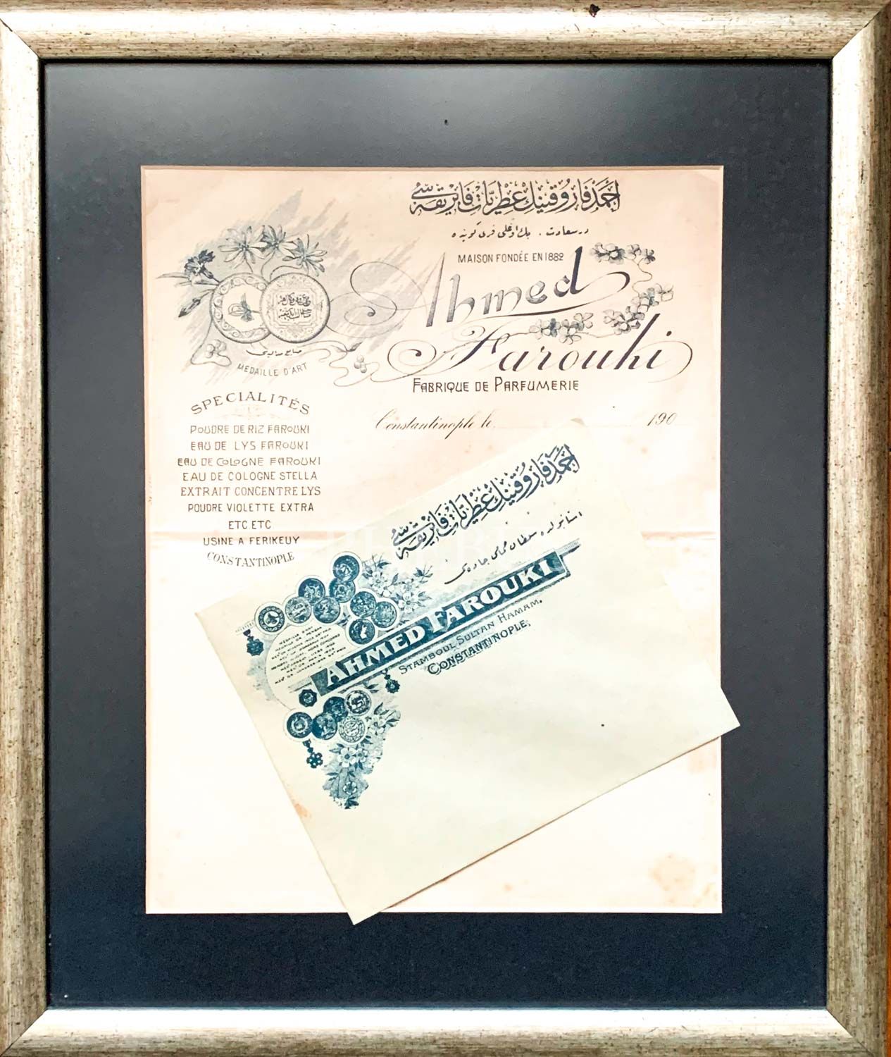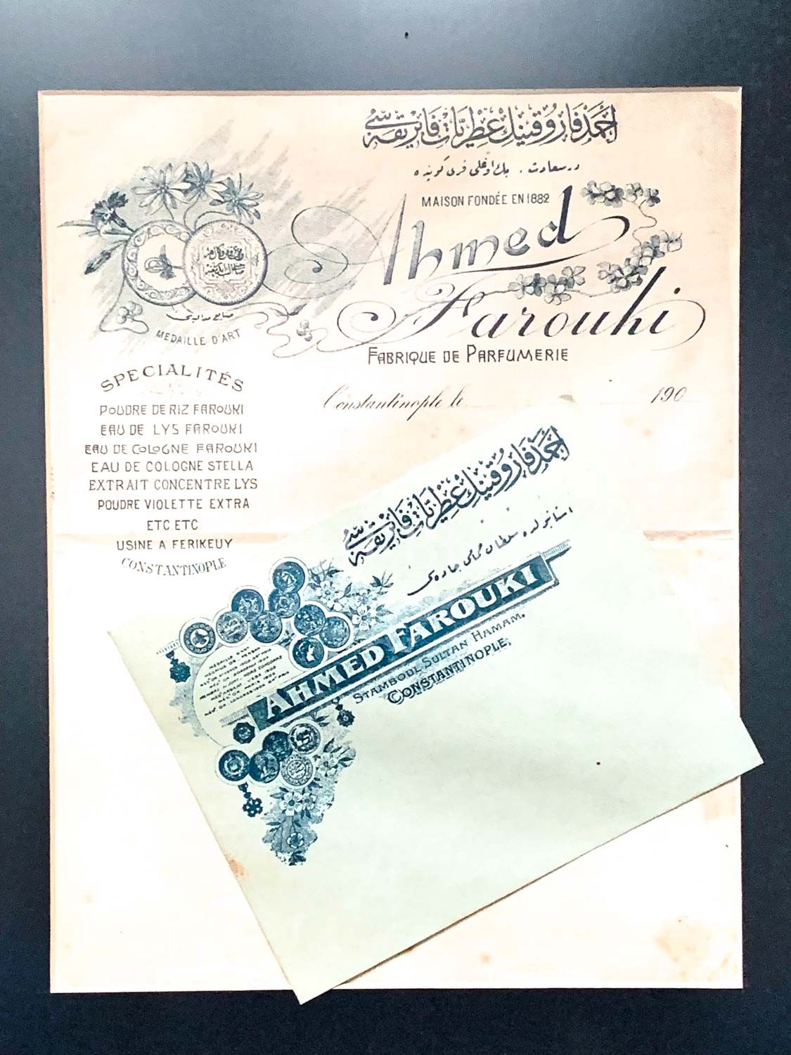 Constantinople Ahmed Farouki Itriyat Fabrikası antetli zarf ve belgesi...