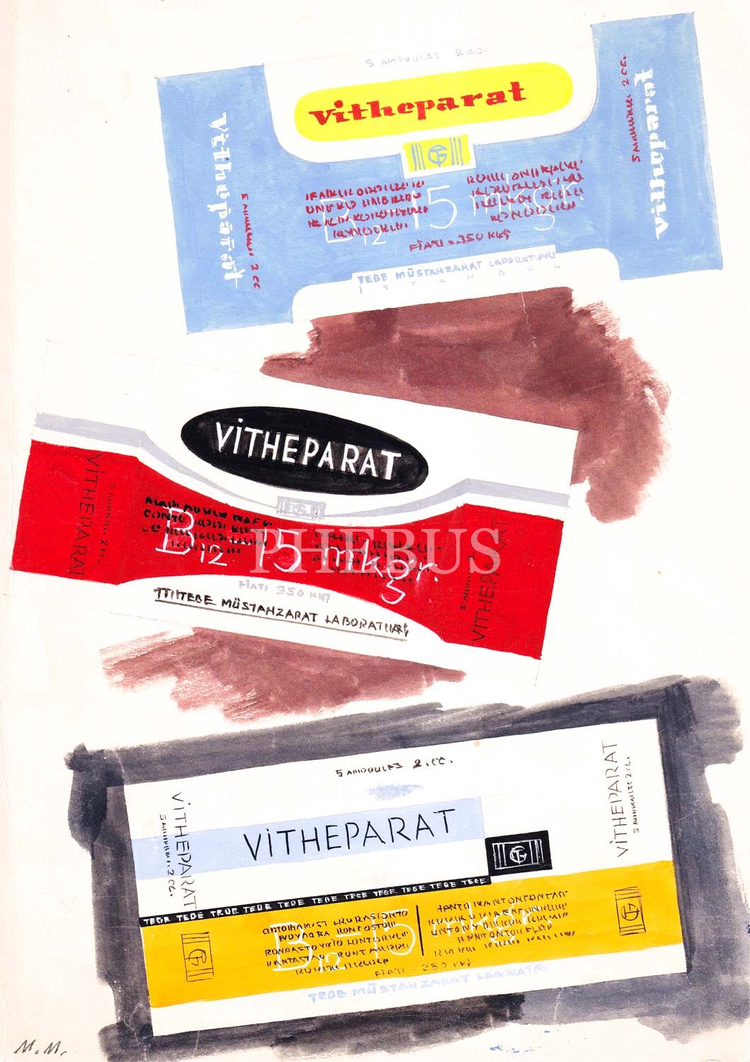 Ünlü grafiker Mesut Manioğlu´nun orijinal el çizimi Vitheparat ilacı reklamı, 19x27 cm...