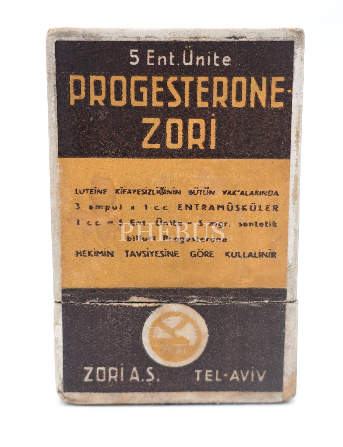 Progesterone Zori kutusu (dolu), Zori A.Ş. (Tel-Aviv), 1946 ruhsatlı, 4x7x2 cm...