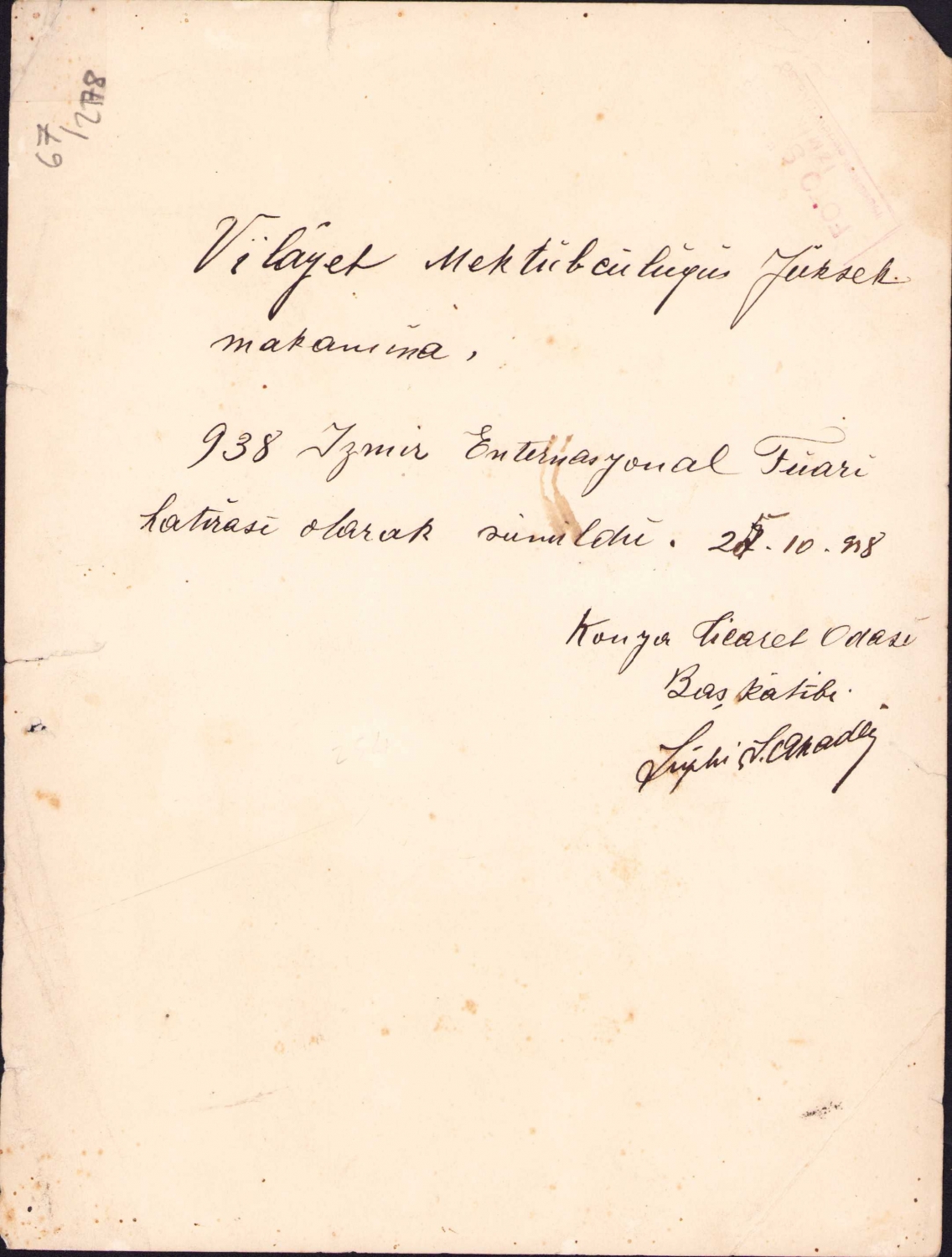 1938 İzmir Enternasyonel Fuarı, Konya Ticaret ve Sanayi Odası sergisi, 24x18 cm, haliyle
