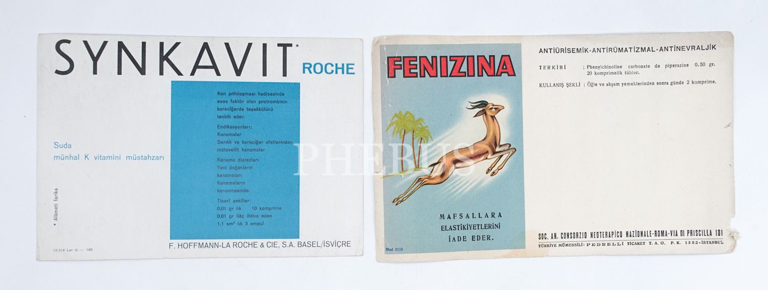 İlaç reklamlı iki adet kurutma kağıdı, 22x14 cm...