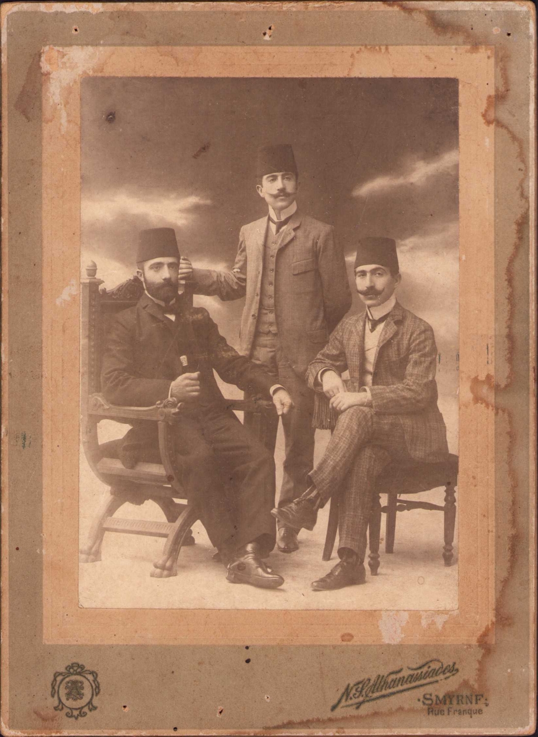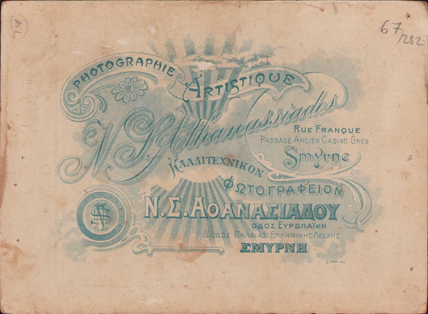 N.S. Athanassiades Smyrne (İzmir) Rue Franque Foto, Osmanlı fesli tipler, 11x15 cm