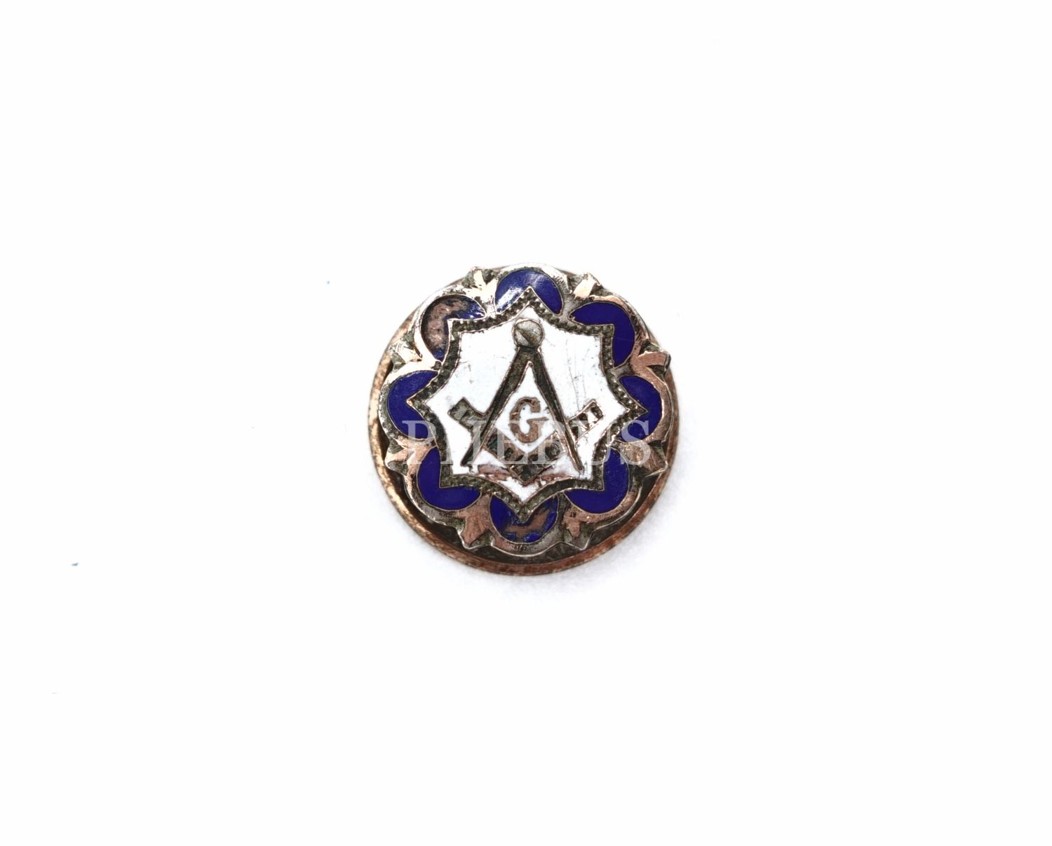 Masonik Gönye ve Pergel görselli mineli rozet