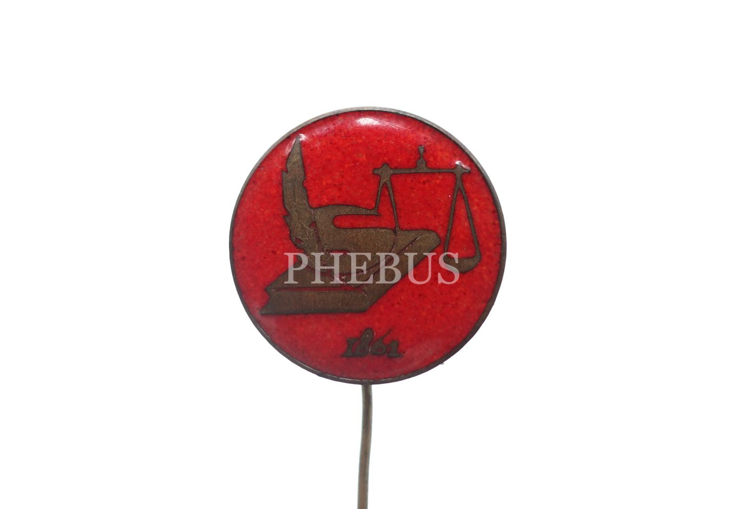 1861 tarihli Kitap ve Terazi görselli mineli rozet