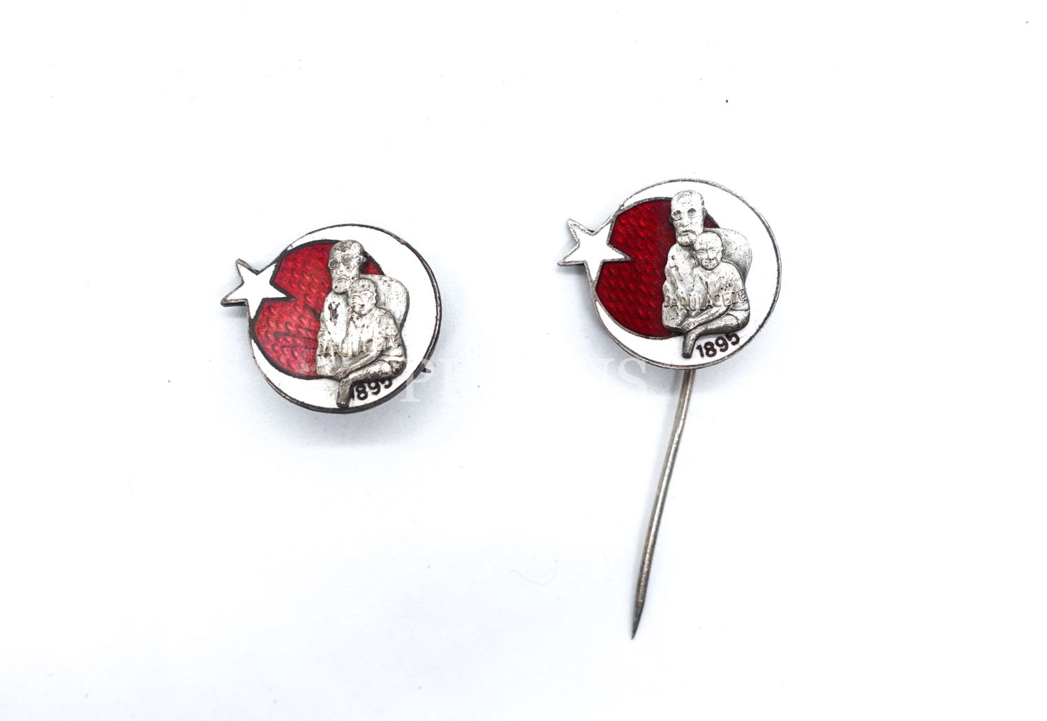 İki adet Darülaceze (1895) yazılı mineli rozet