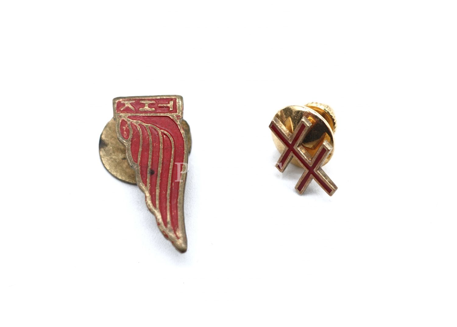 "Tek kanat görselli T.H.K" yazılı rozetin bulunduğu 3 adet rozet lotu